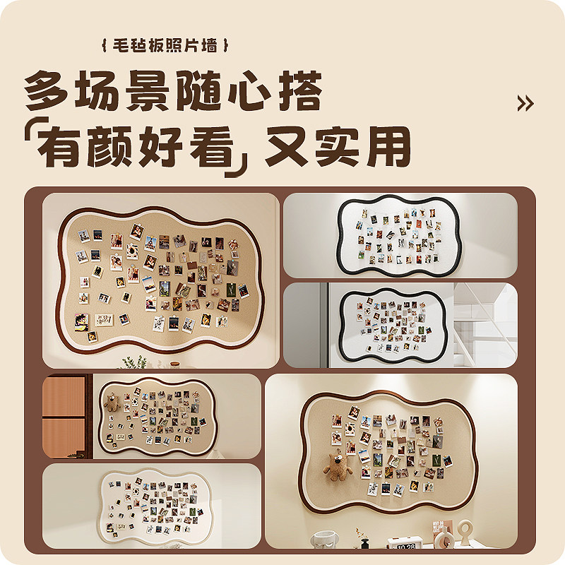 毛毡墙贴创意照片墙毛毡板免打孔相册墙软木板拍立得diy装饰墙面留言板软木板相框文化墙客厅玄关背景板墙贴