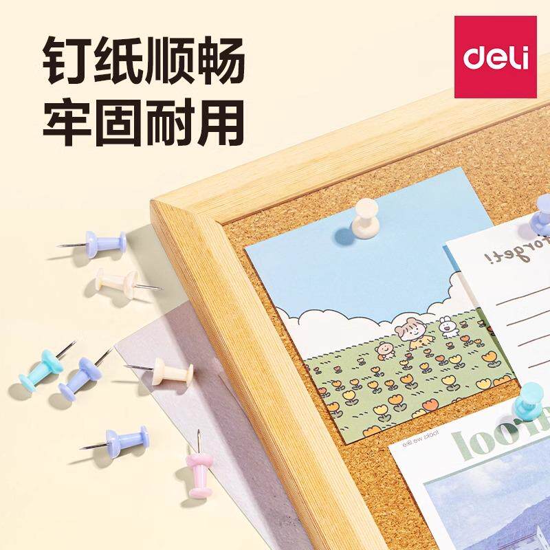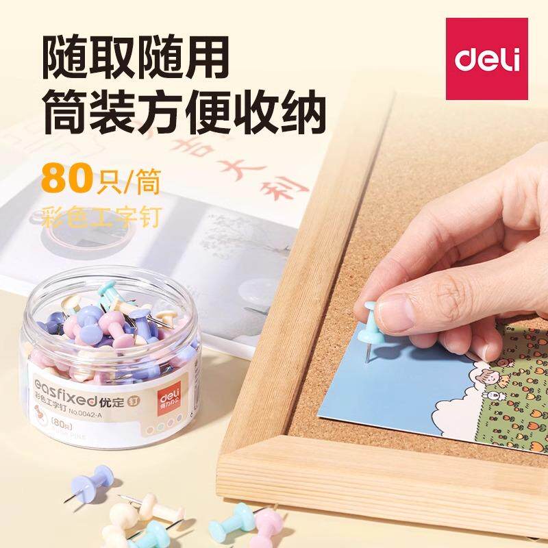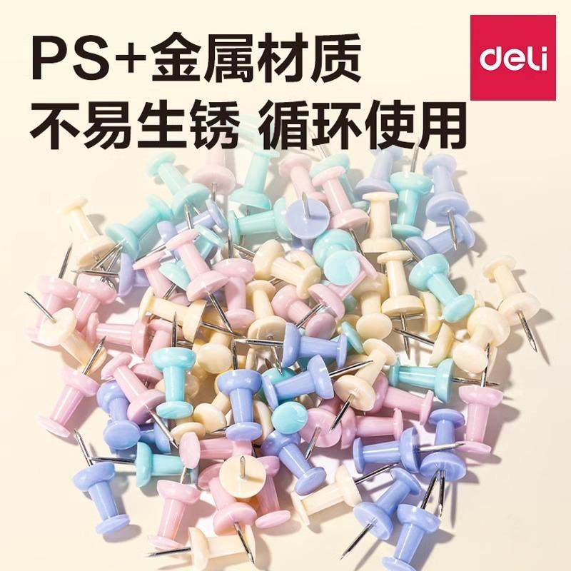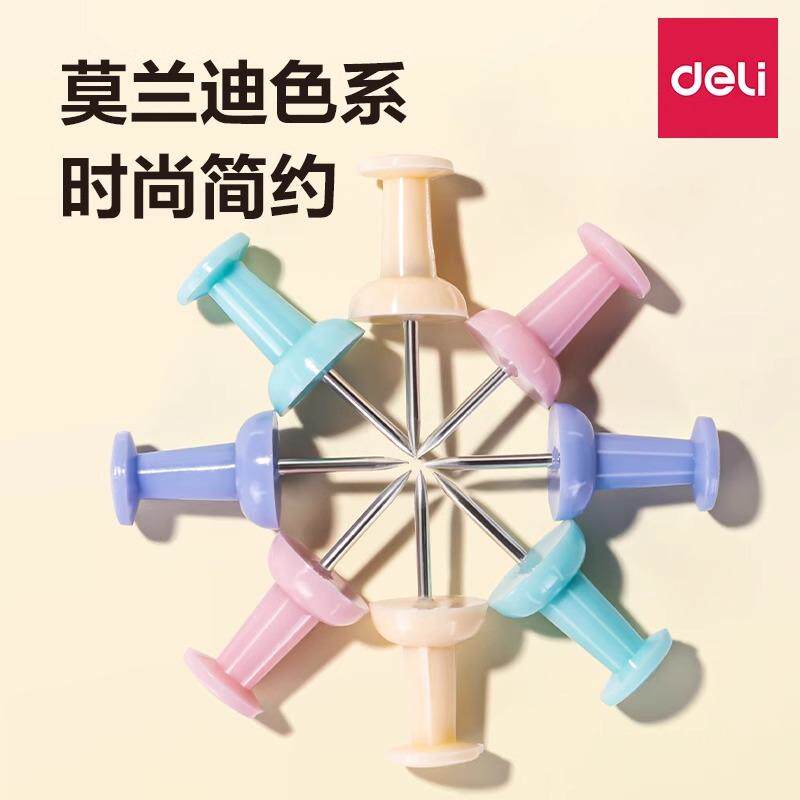 得力工字钉莫兰迪色照片墙装饰钉毛毡板钉子图钉毛毡墙照片钉子大头针带帽毛毡板装饰固定彩色毛毡钉图钉