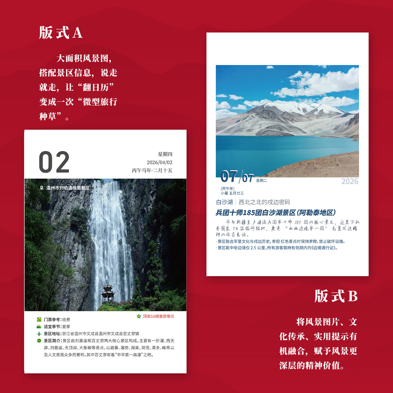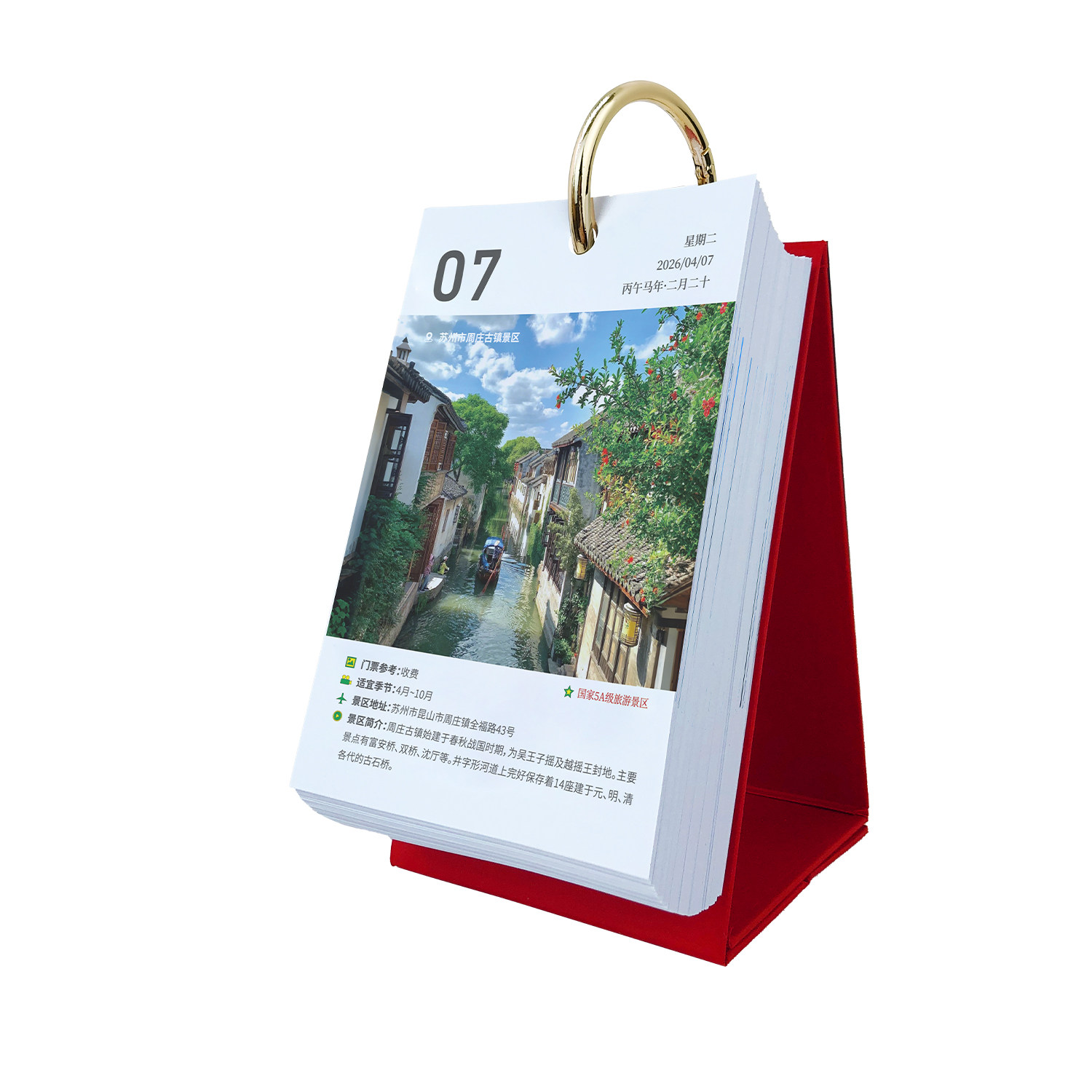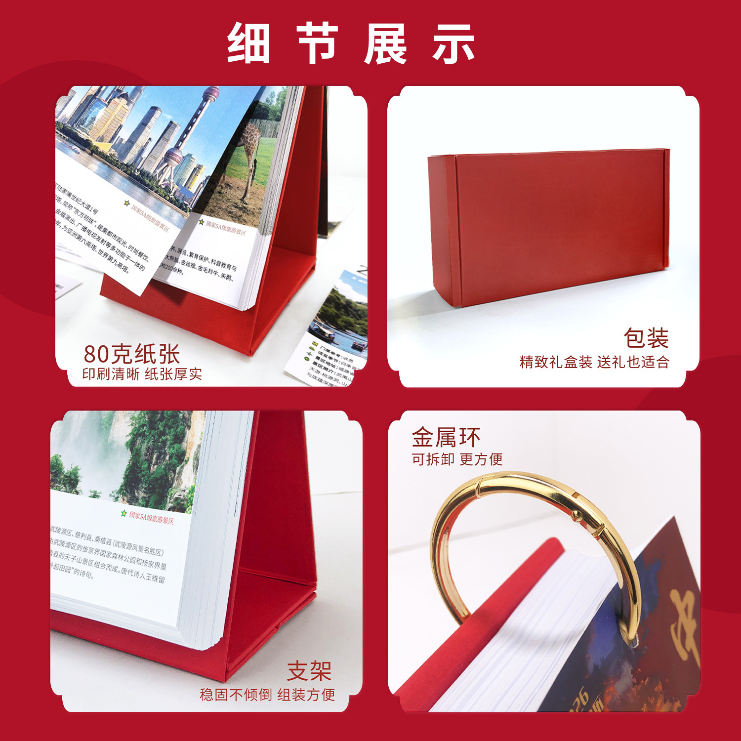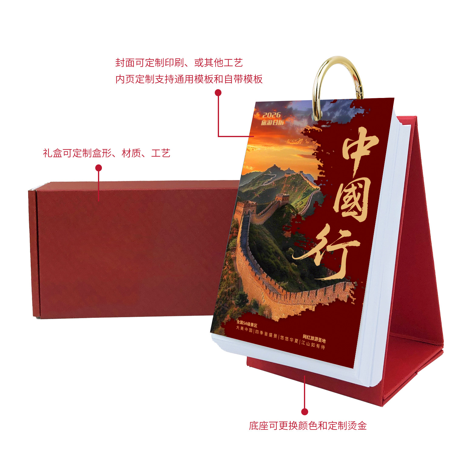 2026年旅行日历中国行台历定制简约单双面商务办公打卡一天一页新年创意桌面多功能摆件旅行365日历定制logo