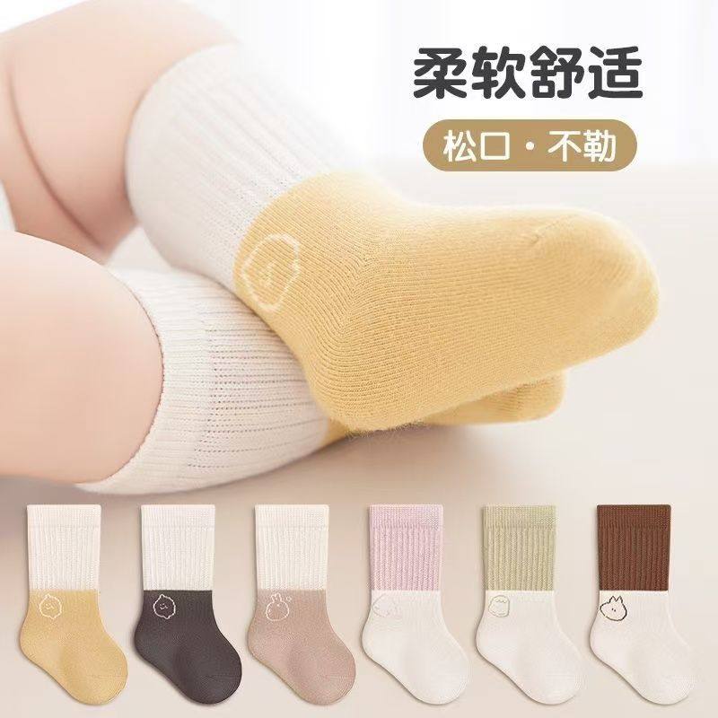 新生儿宝宝袜子春秋棉质初生婴儿0-3月6胎袜无骨中长筒袜中筒袜子