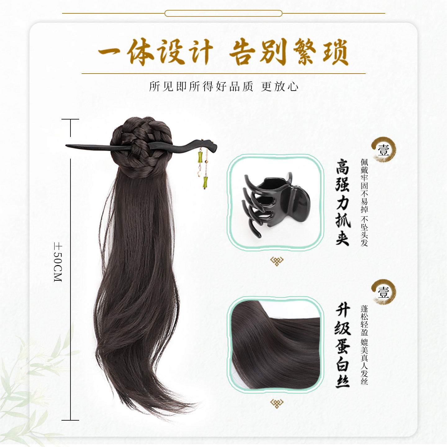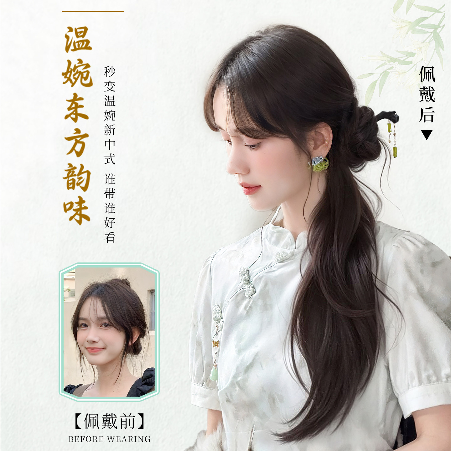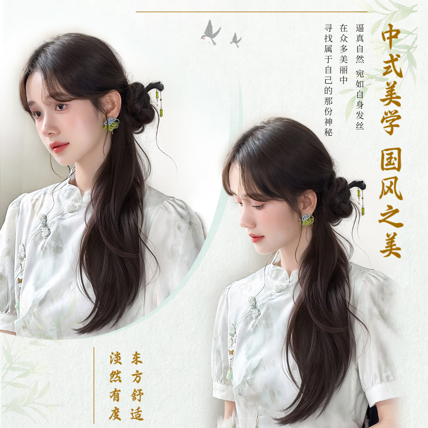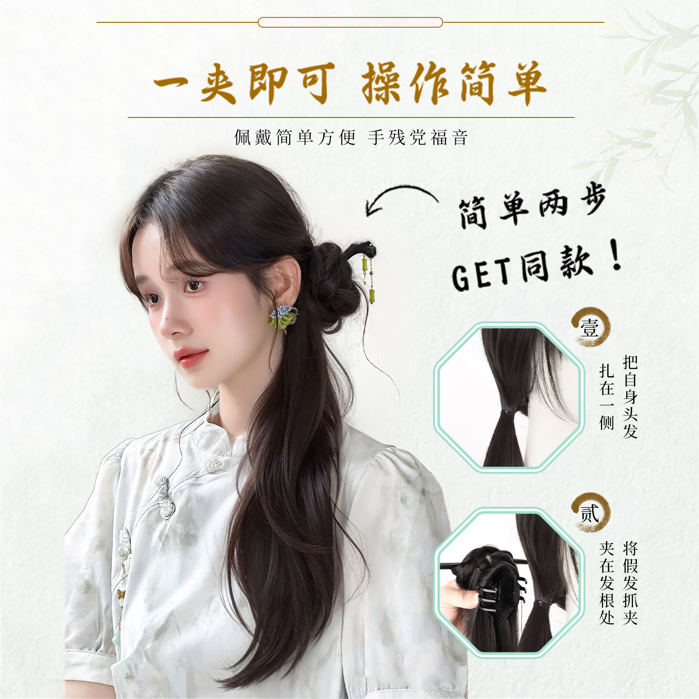 新中式假发辫马尾女轻国风马尾假发抓夹古风汉服旗袍编发侧马尾辫