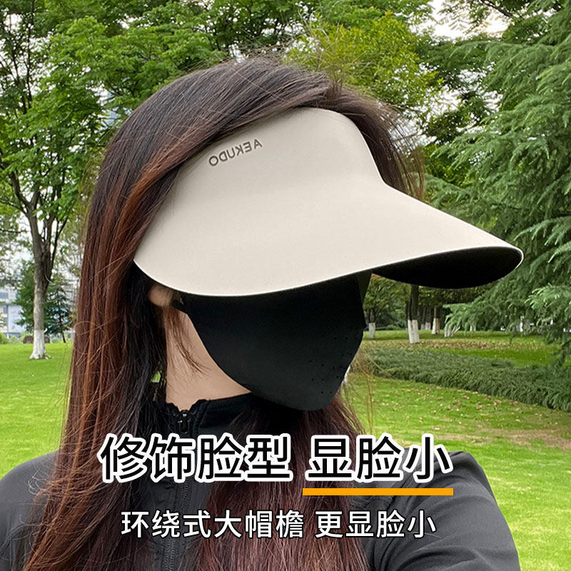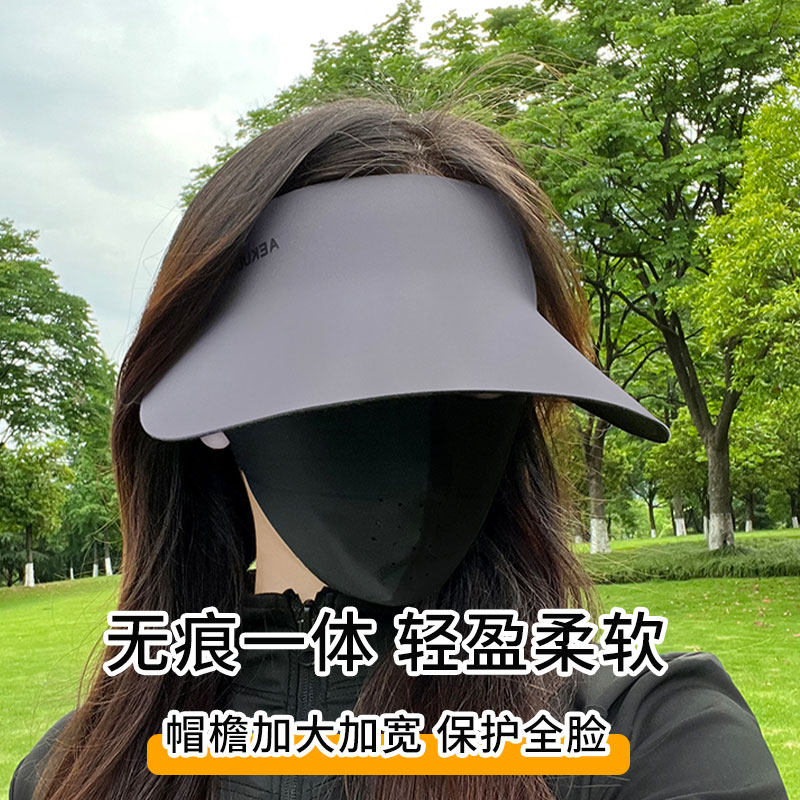 一体防晒帽女夏季防紫外线无痕遮阳帽可折叠空顶太阳帽子帽檐口罩
