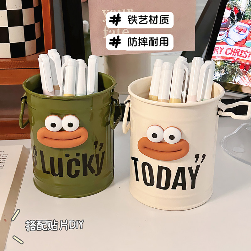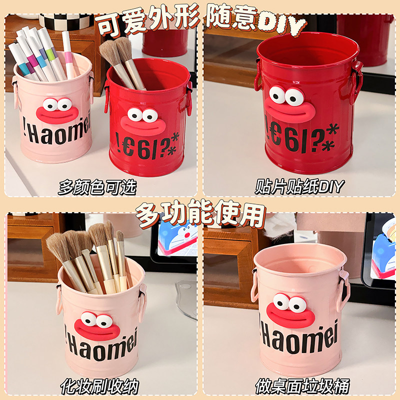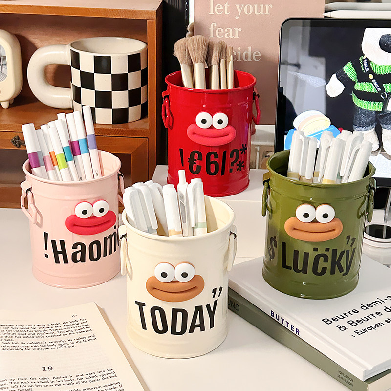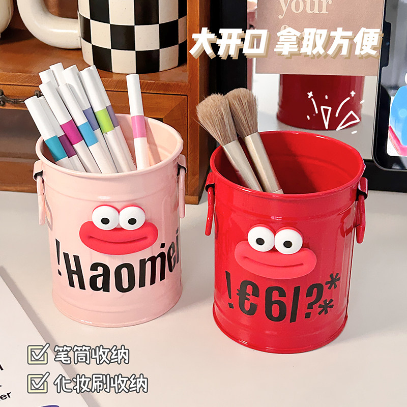 搞怪香肠嘴大容量铁艺笔筒儿童学生桌面文具收纳盒复式收纳桶摆件