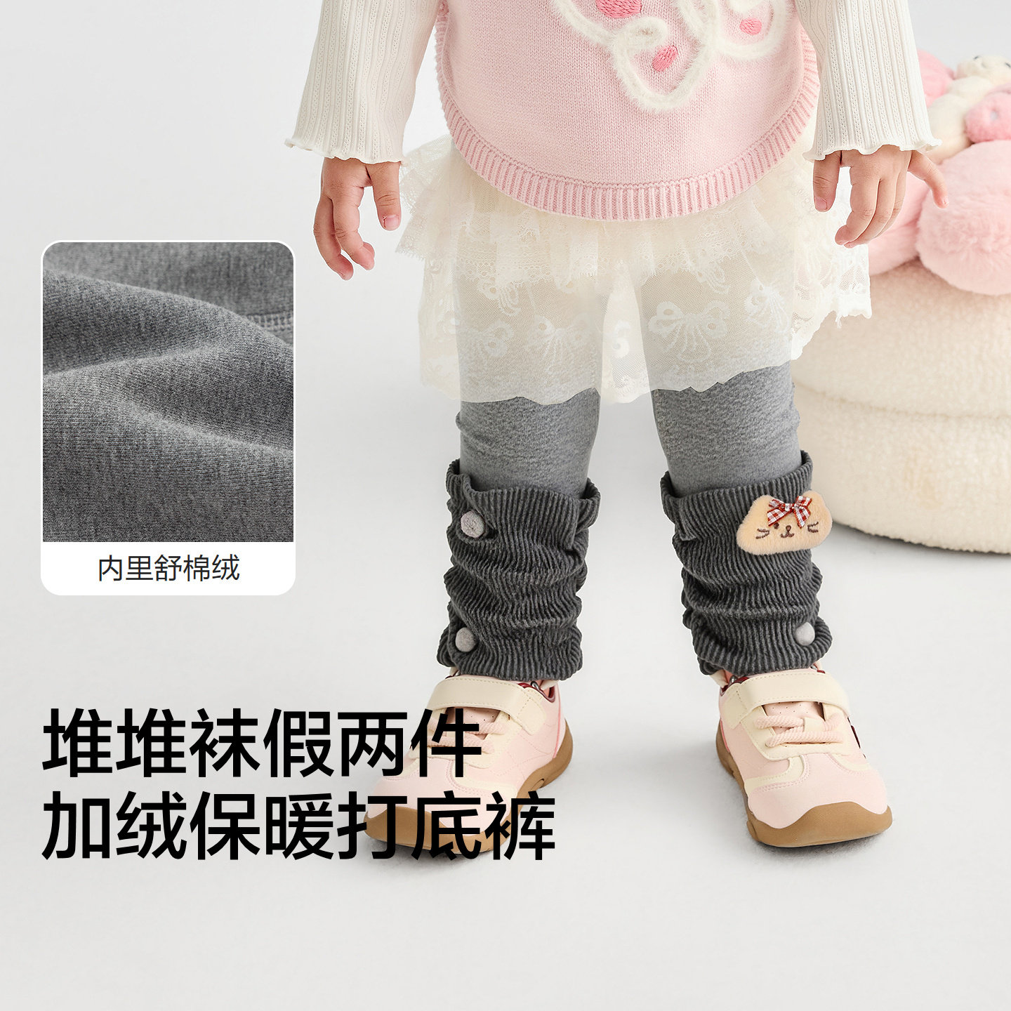 撞色堆堆袜假两件,加绒保暖打底裤