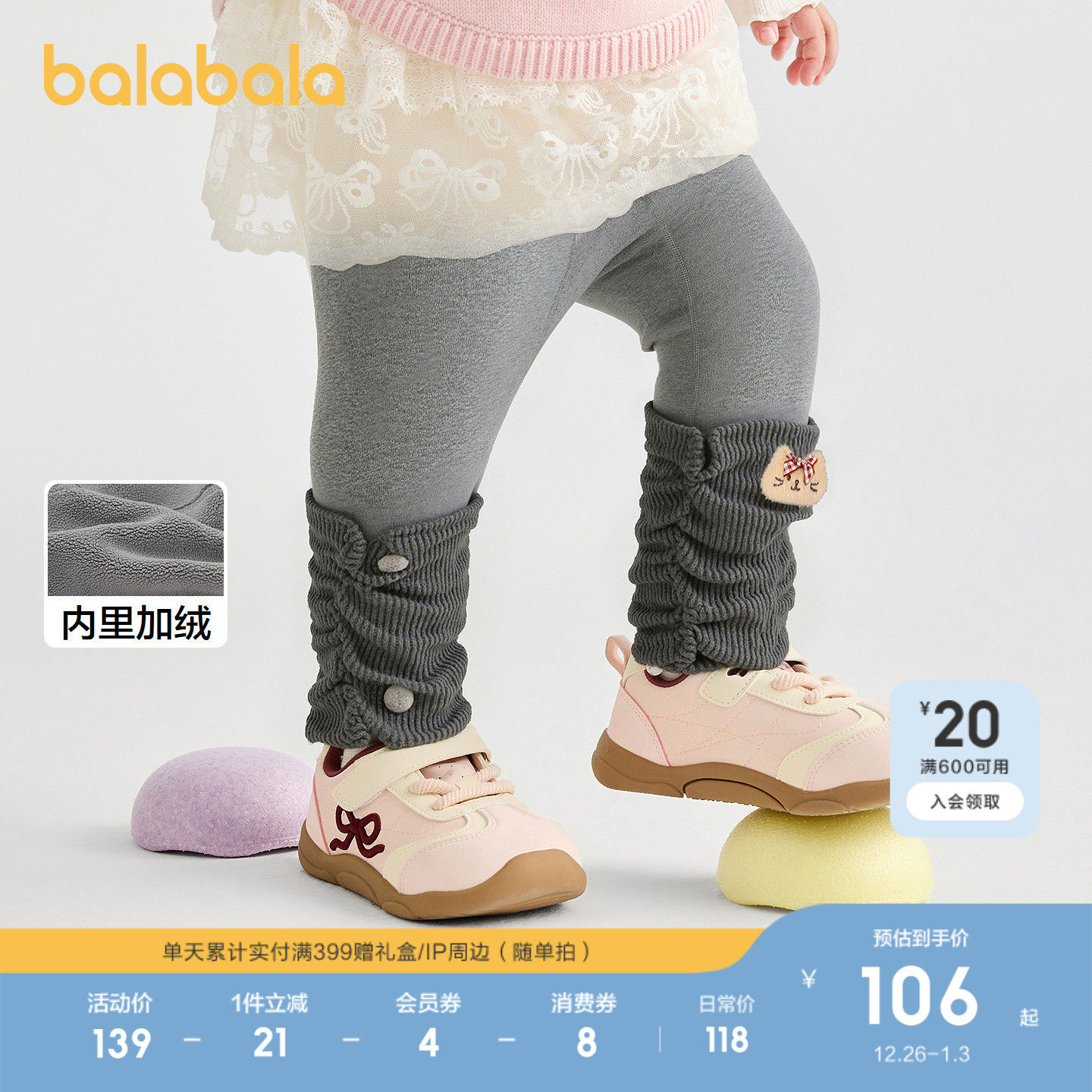 【商场同款】巴拉巴拉女童打底裤加绒假两件裤子秋冬2025新款长裤