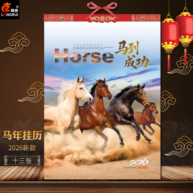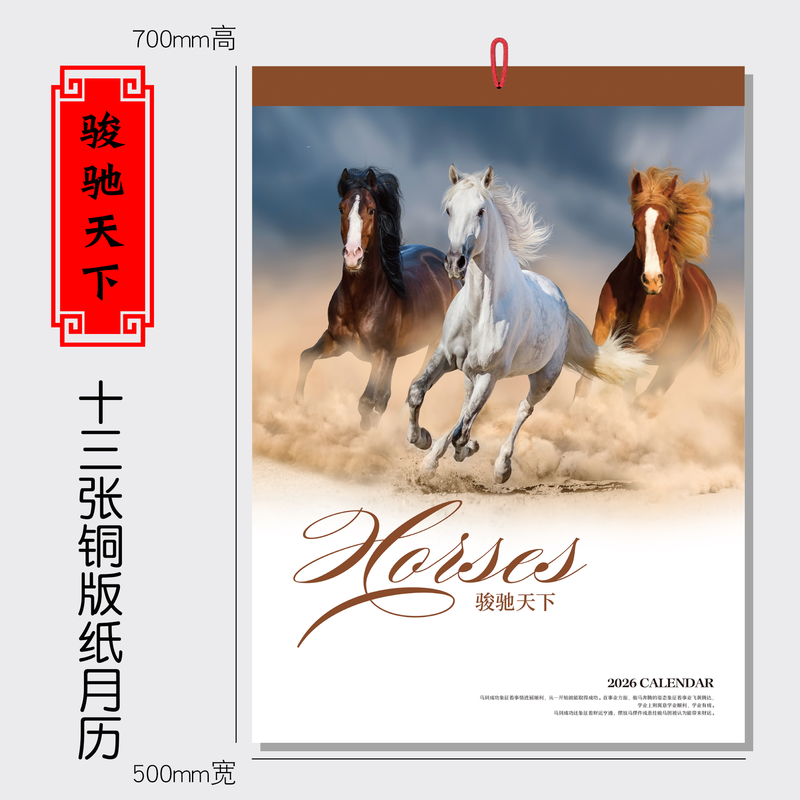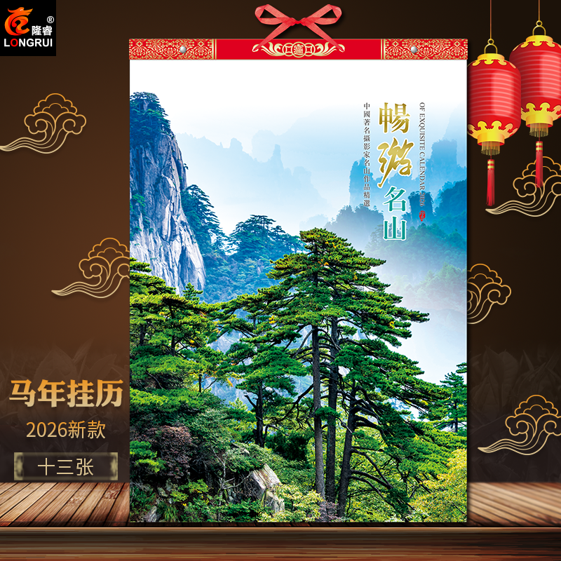 2026年挂历定制13张创意马年公司企业广告印刷月历纸质年历家用挂历订做中国风水墨山水风景画新款装饰画挂墙