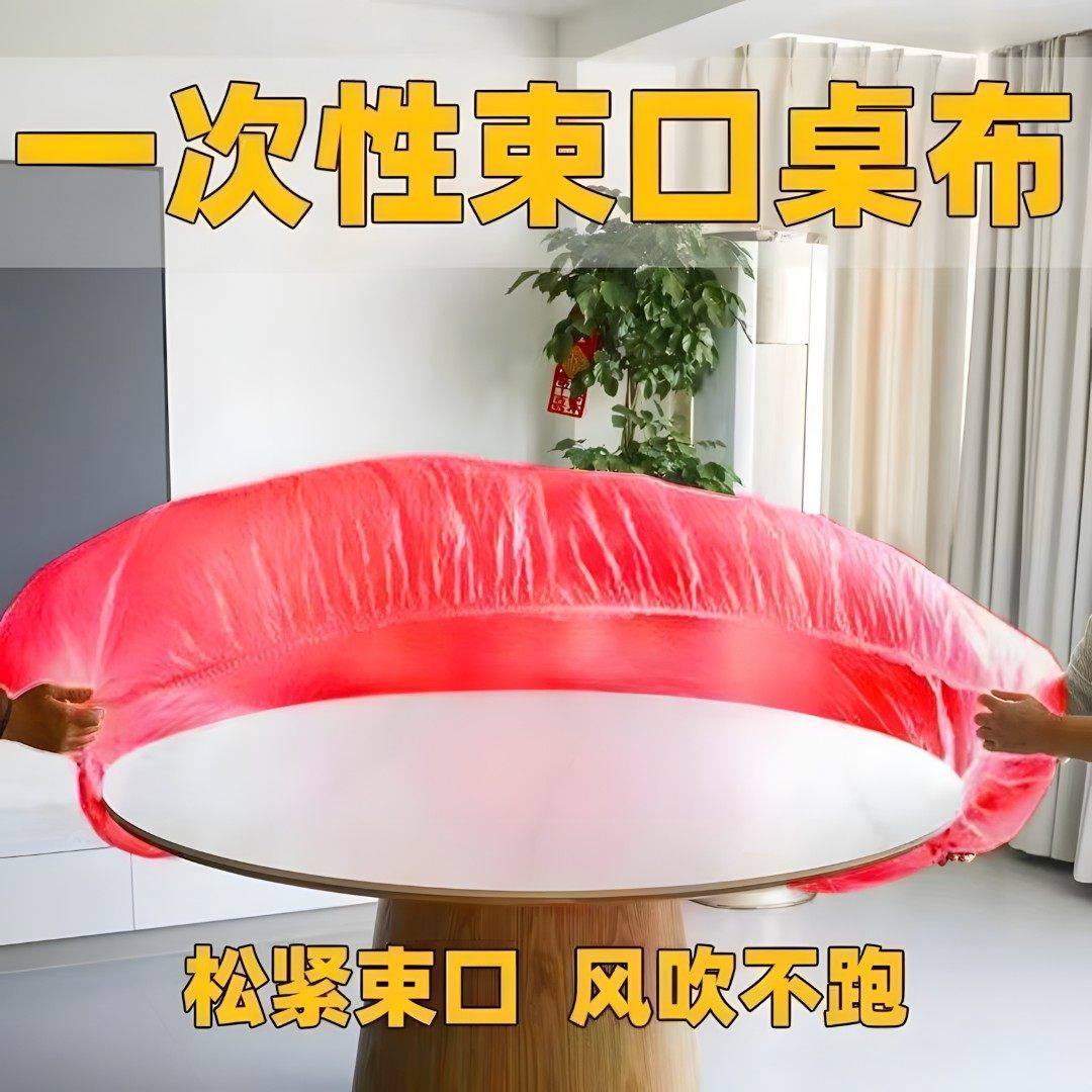 松紧束口桌布一次性家用加厚免洗透明红色餐馆饭店酒席婚庆桌套布