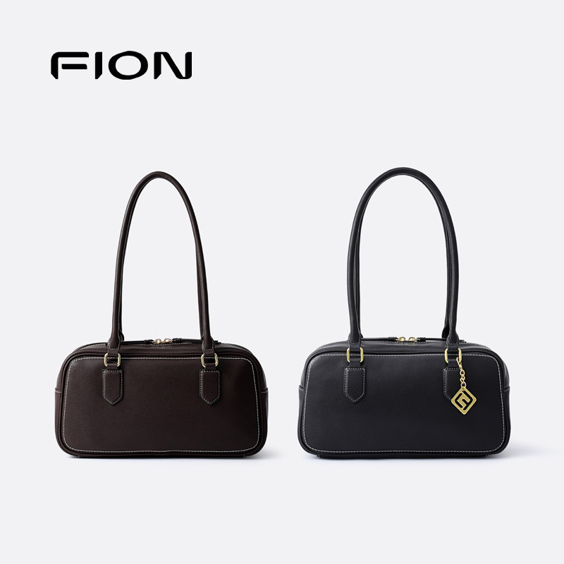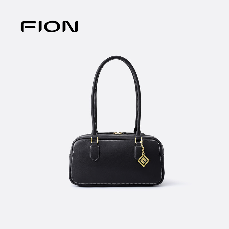 Fion/菲安妮真皮保龄球包2025新款高级感小众设计单肩腋下包包女