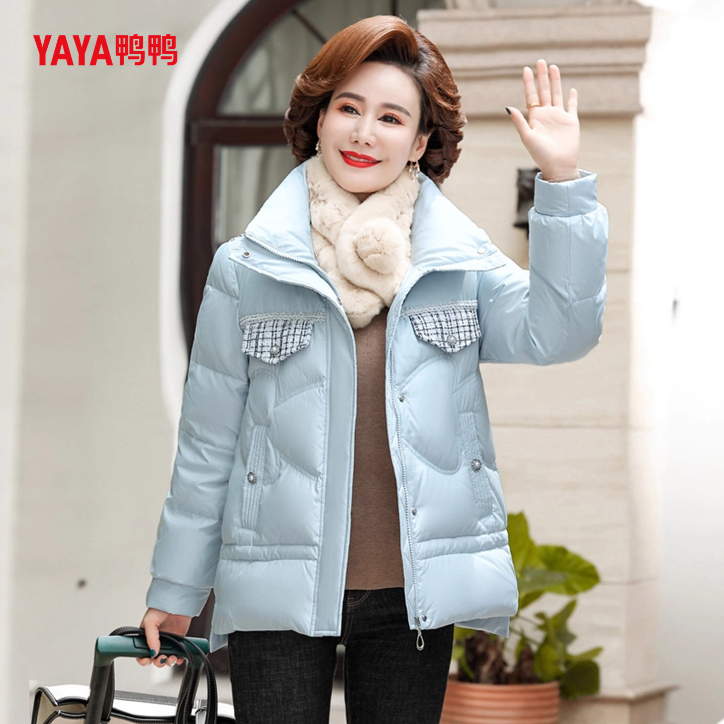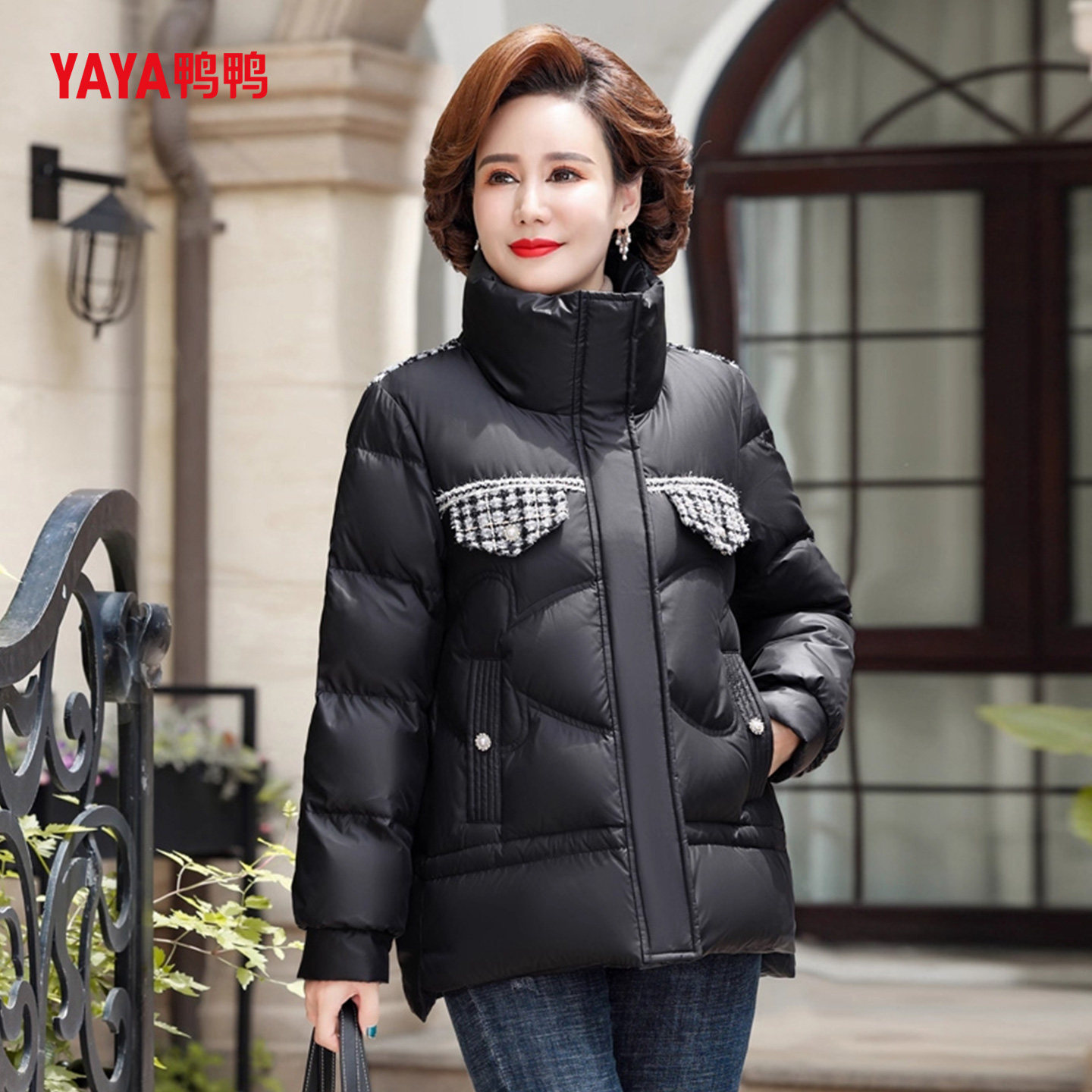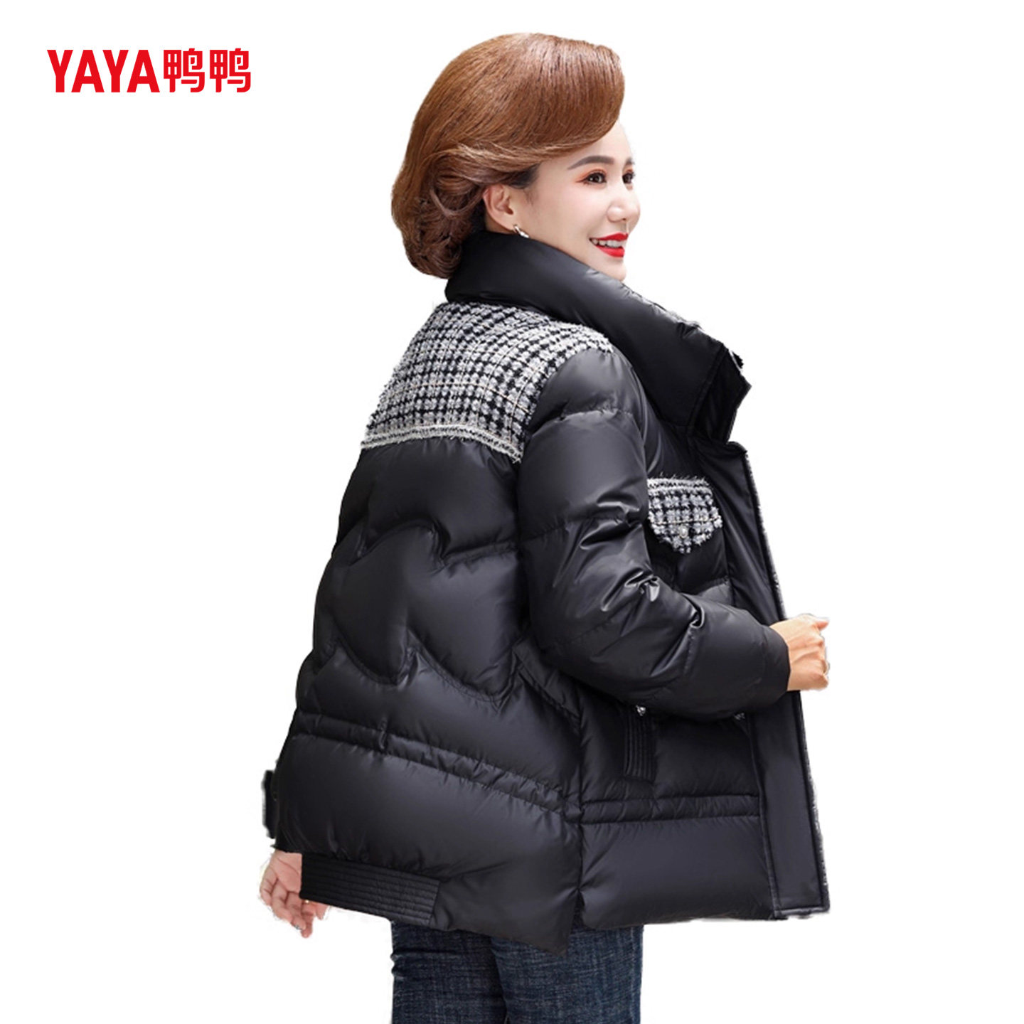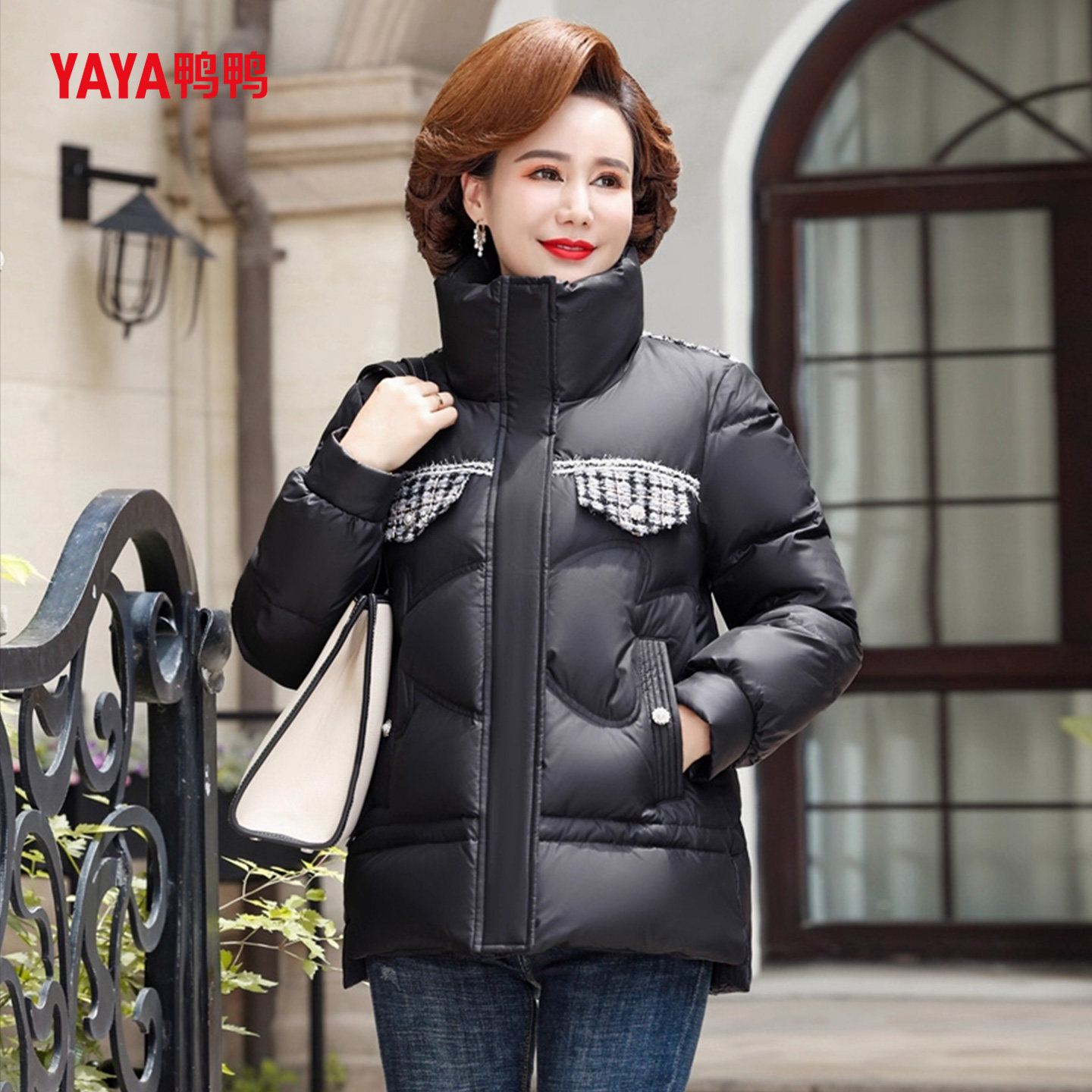 YAYA鸭鸭中老年羽绒服女40岁小个子短款妈妈冬装洋气加厚保暖外套