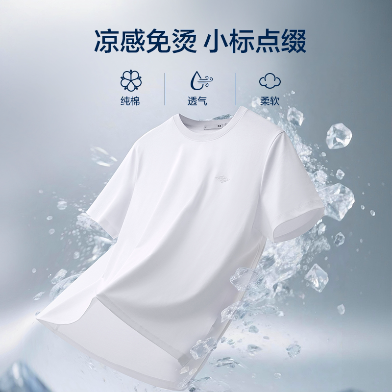 森马短袖T恤男装新款纯棉半袖情侣纯白圆领凉感白t休闲打底衫贴身