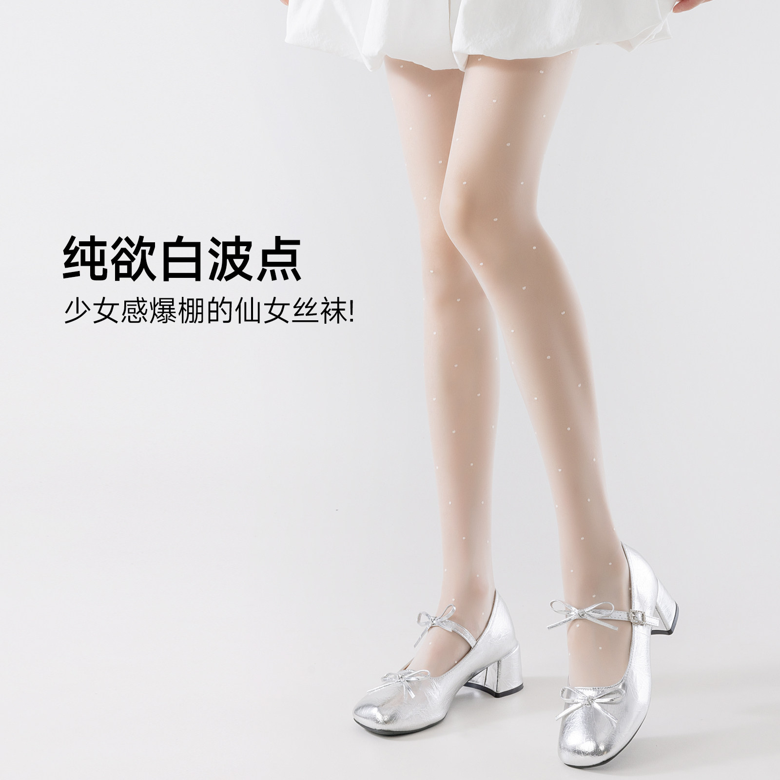 波点丝袜女性感超薄连裤袜白色防勾丝0D高透高级感穿搭黑色丝袜