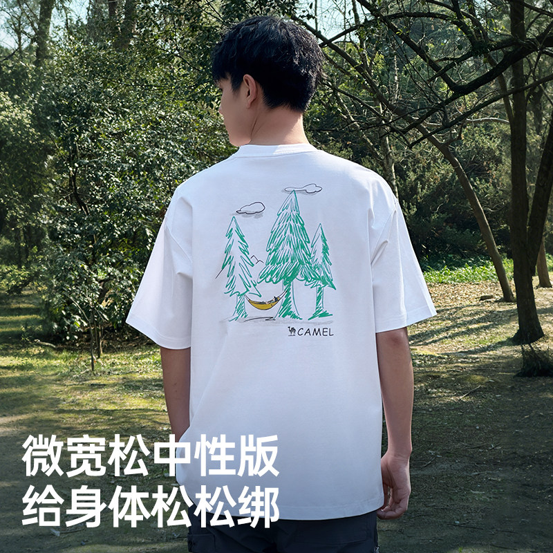 骆驼男装三防短袖t恤男夏季2026新款圆领印花户外情侣休闲半袖
