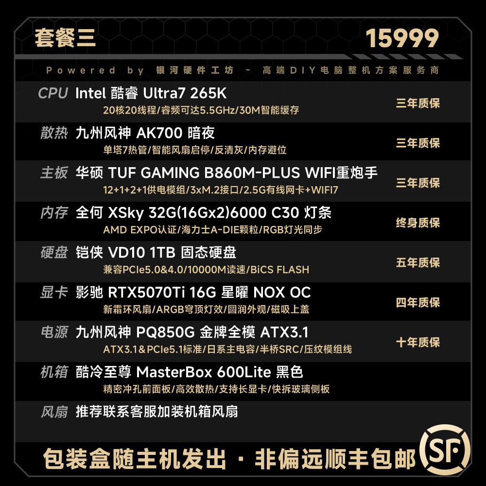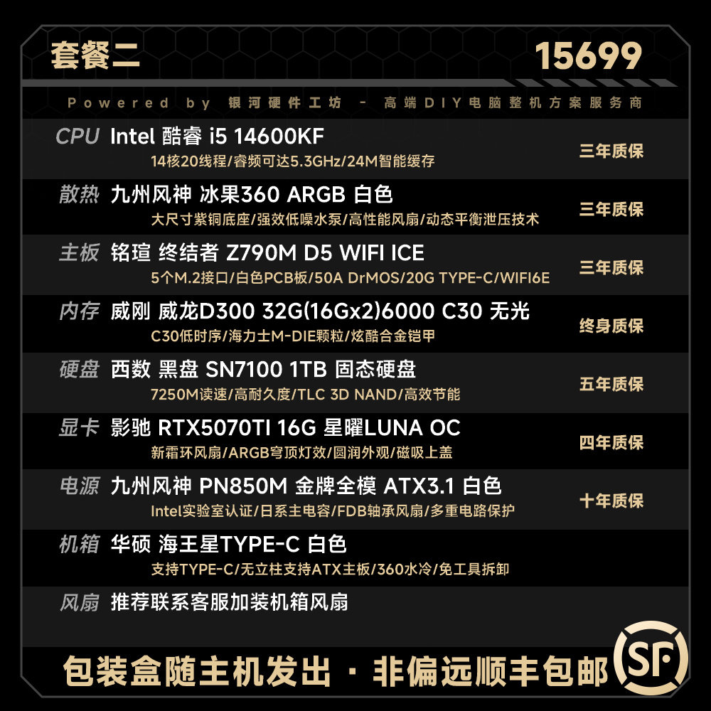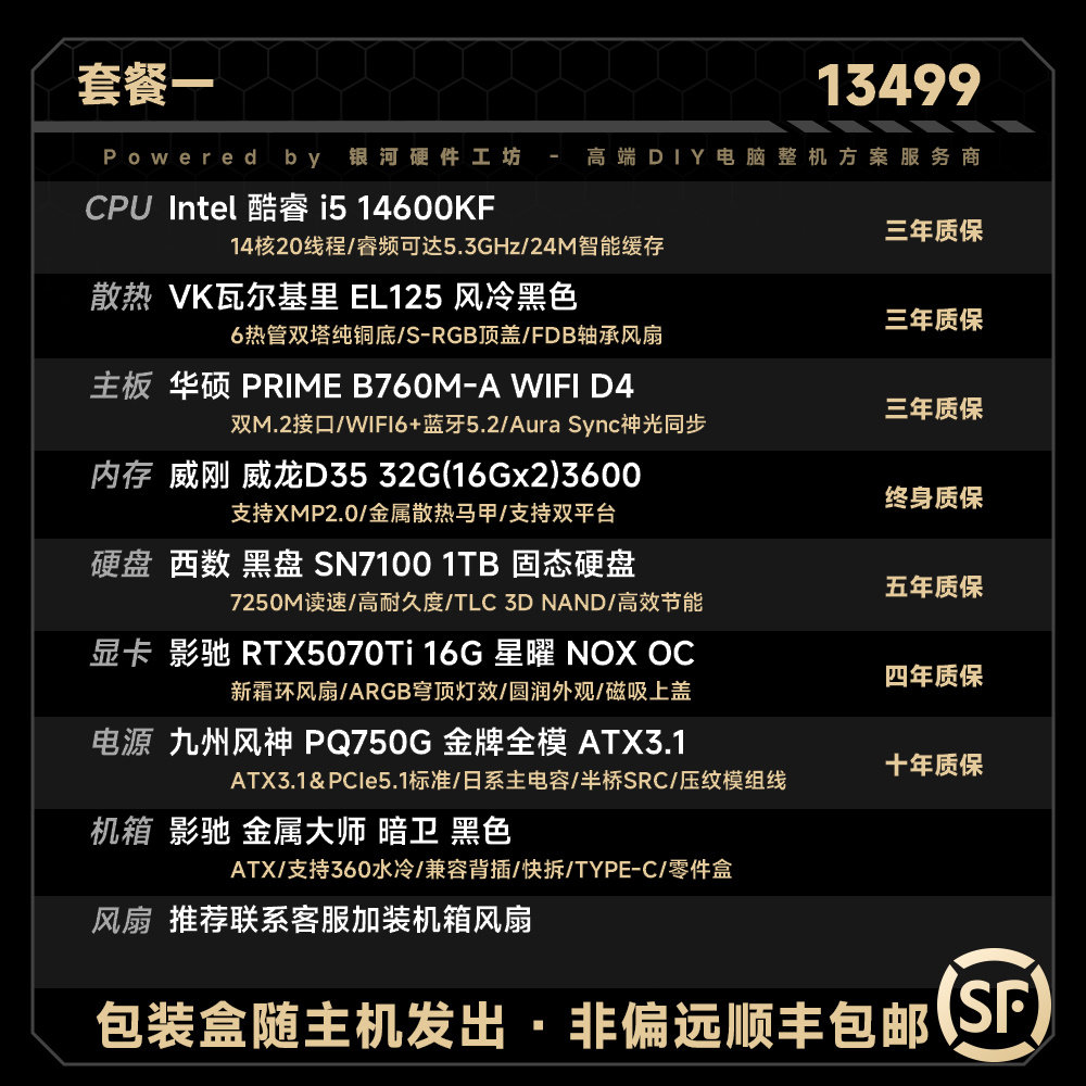 影驰RTX5070TI星曜/Intel 14600KF/265KF打瓦吃鸡高性能电脑主机