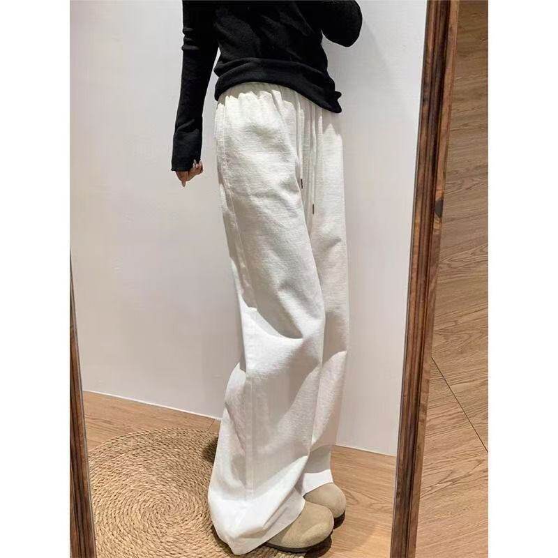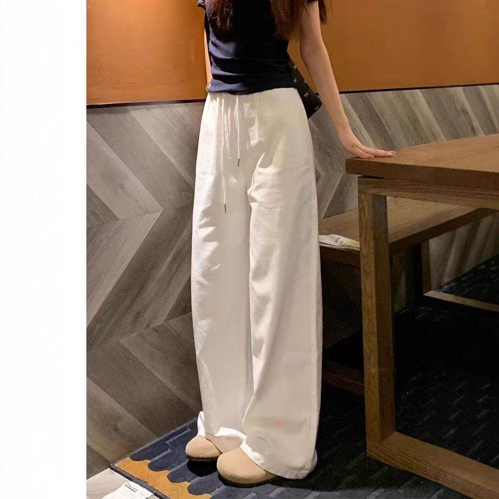 梨型身材白色运动休闲裤女春夏季新款胖妹妹高腰宽松显瘦阔腿长裤