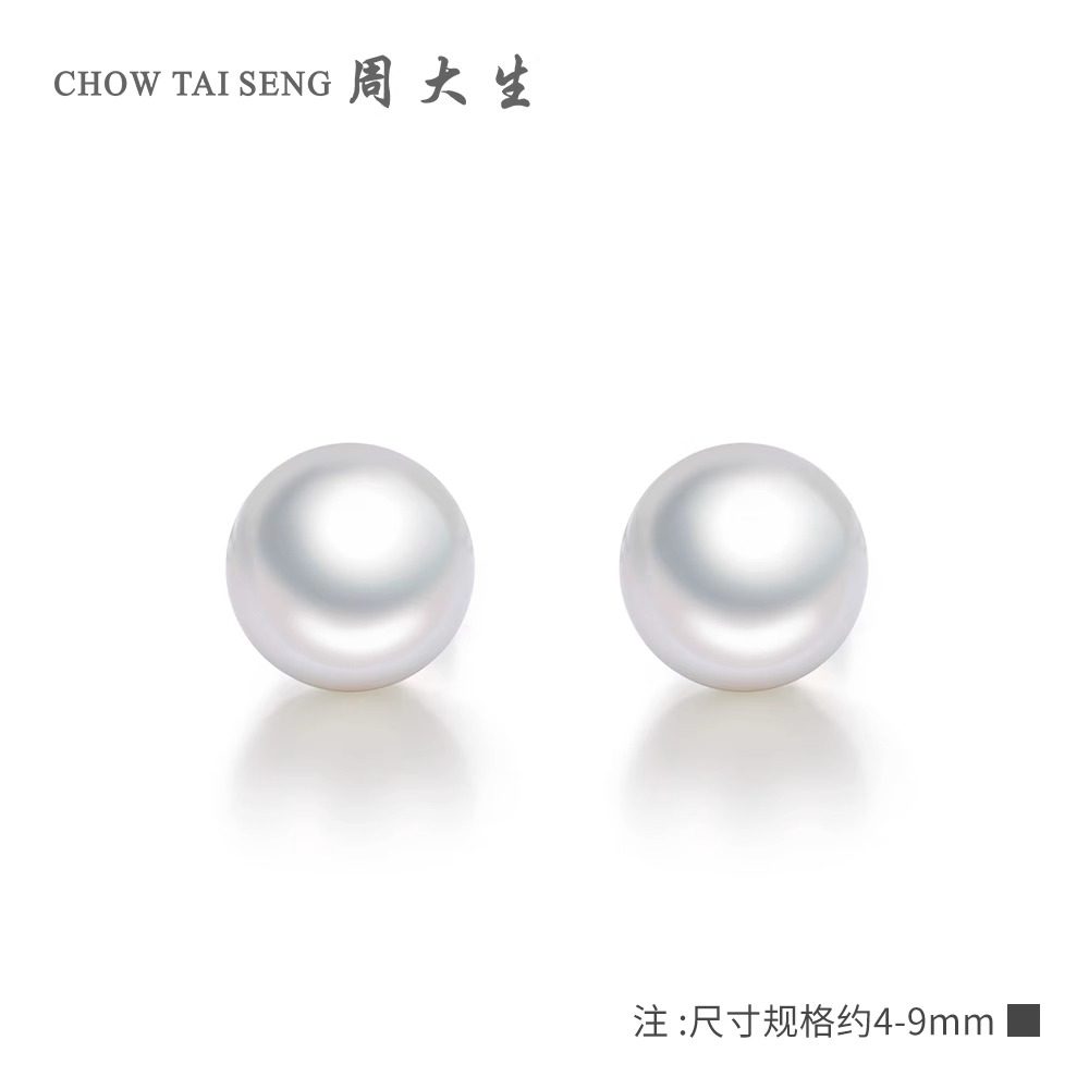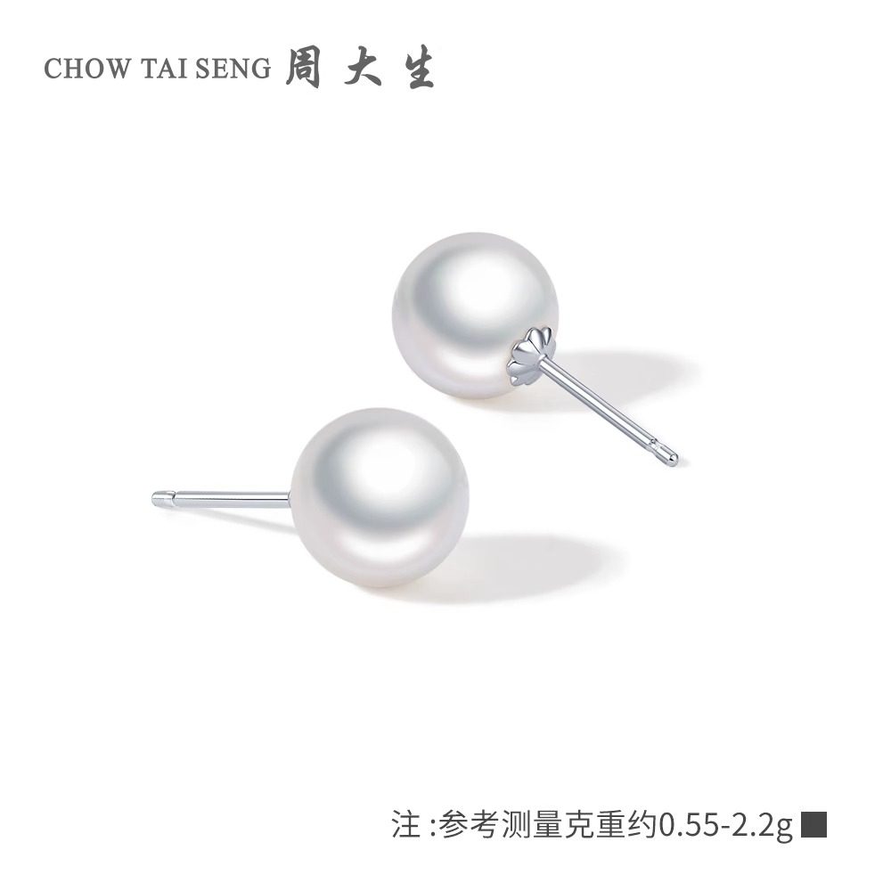 周大生淡水珍珠耳钉S925纯银女耳针轻奢精致耳饰情人节礼物送女友