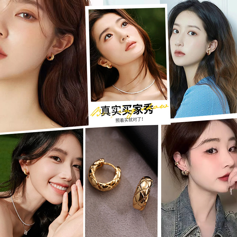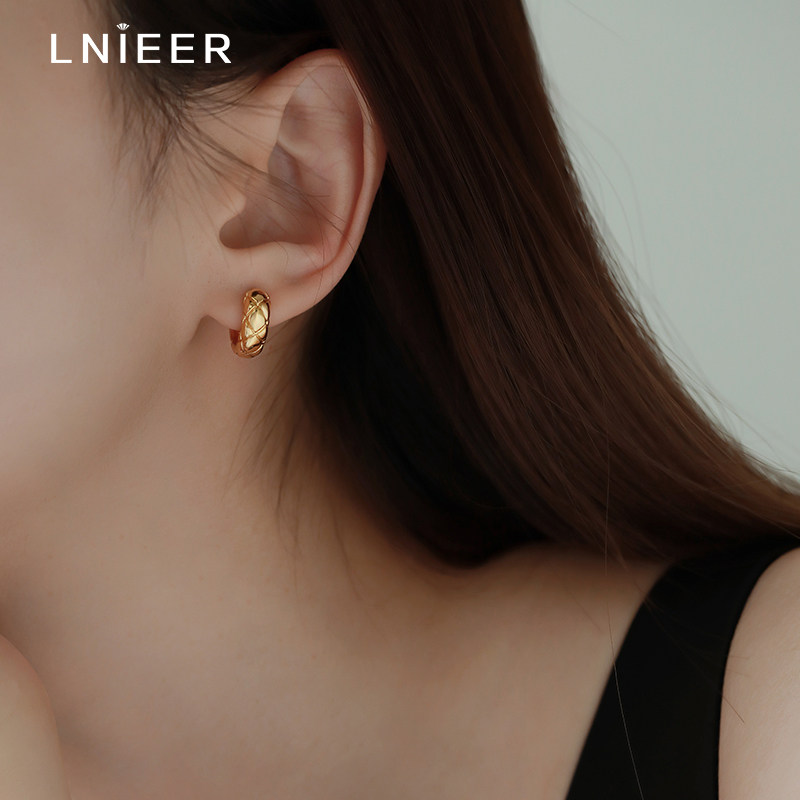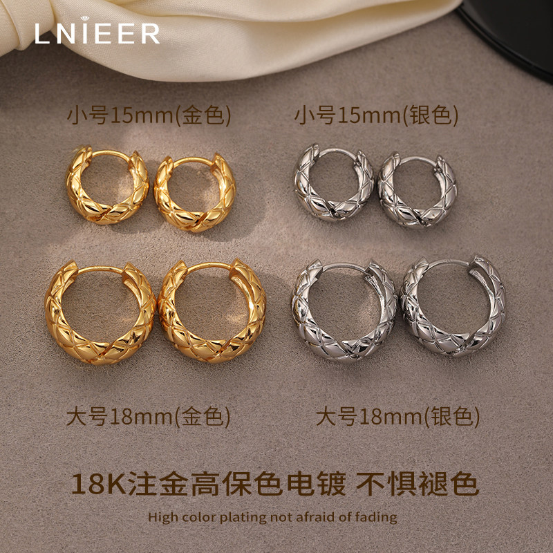 刘亦菲同款S925银针菱格纹圈圈耳环耳圈耳钉2026爆款轻奢高级耳饰