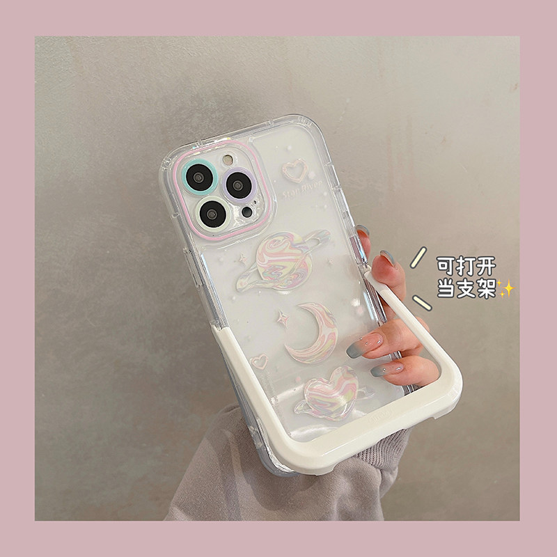 ins日韩星球爱心支架适用苹果iphone16pro手机壳15小众高级感14promax透明17超火13新款12全包max保护套plus