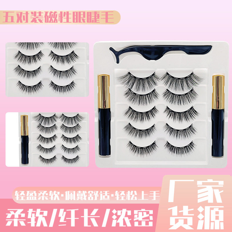 五对装磁铁假睫毛自然浓密仿真纤长眼睫毛免胶磁力吸铁石睫毛