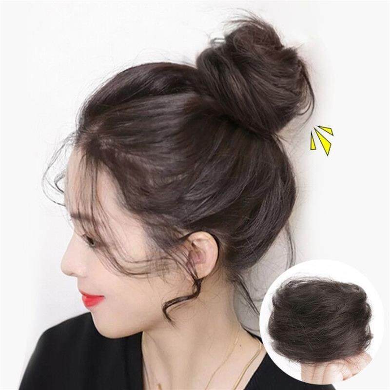 低丸子头逼真假发圈蓬松自然仿真假发包花苞头懒人直发圈慵懒气质