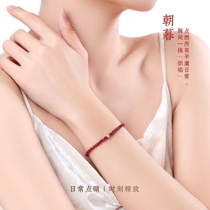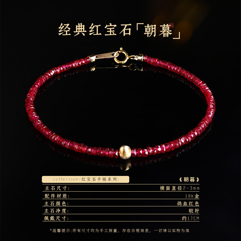 可卿珠宝 朝暮 鸽血红宝石手链女18k手串饰品礼物彩宝红色手绳