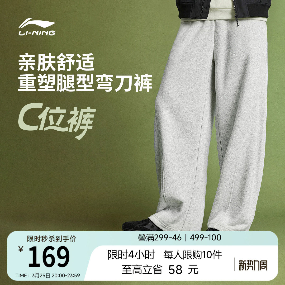 李宁C位裤丨弯刀裤男2026新款卫裤灰色宽松休闲裤子阔腿运动长裤