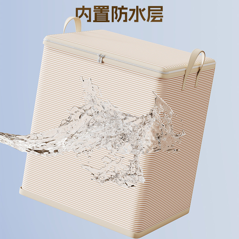 三层加厚帆布带盖拉链收纳箱防潮大容量衣服被子收纳袋可折叠整理