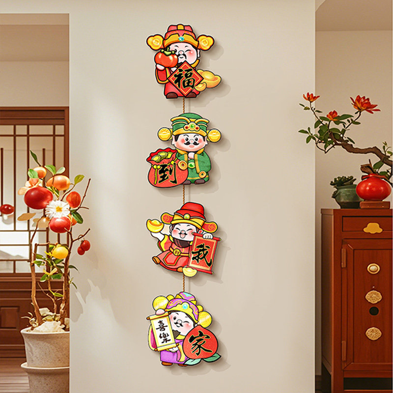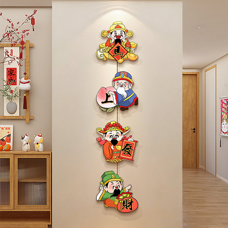 财神爷客厅电视背景墙装饰画新年喜庆串联组合画寓意好走廊玄关画