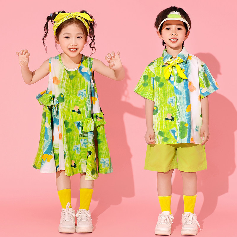 六一儿童多巴胺绿色啦啦队演出服小学生运动会服装幼儿园套装班服