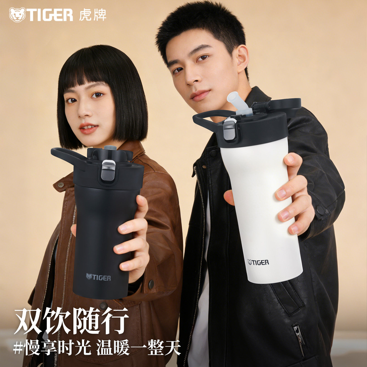 tiger虎牌保温杯吸管直饮两用水杯保冷保冰单手弹盖便携杯子MOF-A