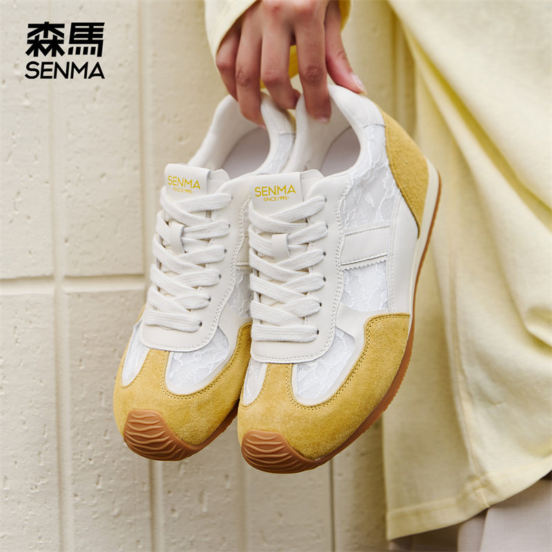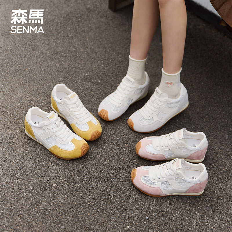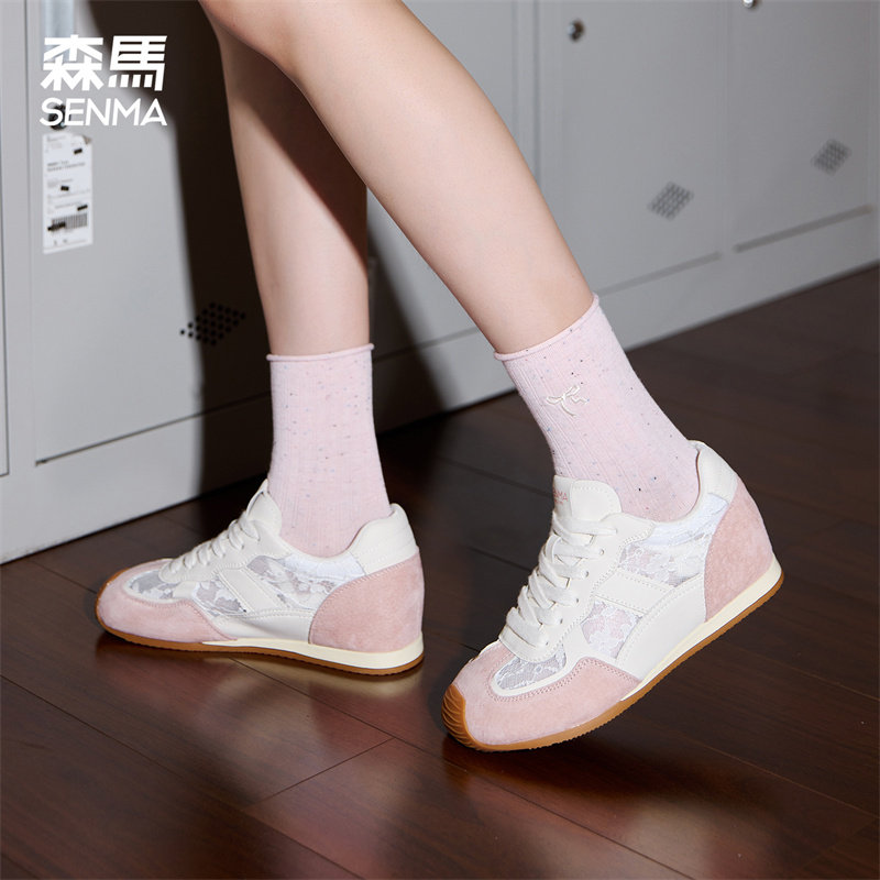 森马内增高德训鞋女2025新款夏季小众蕾丝休闲薄款透气设计感鞋子