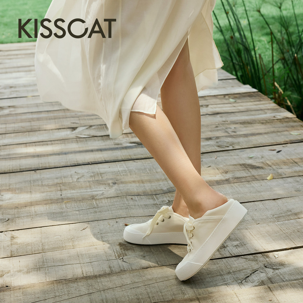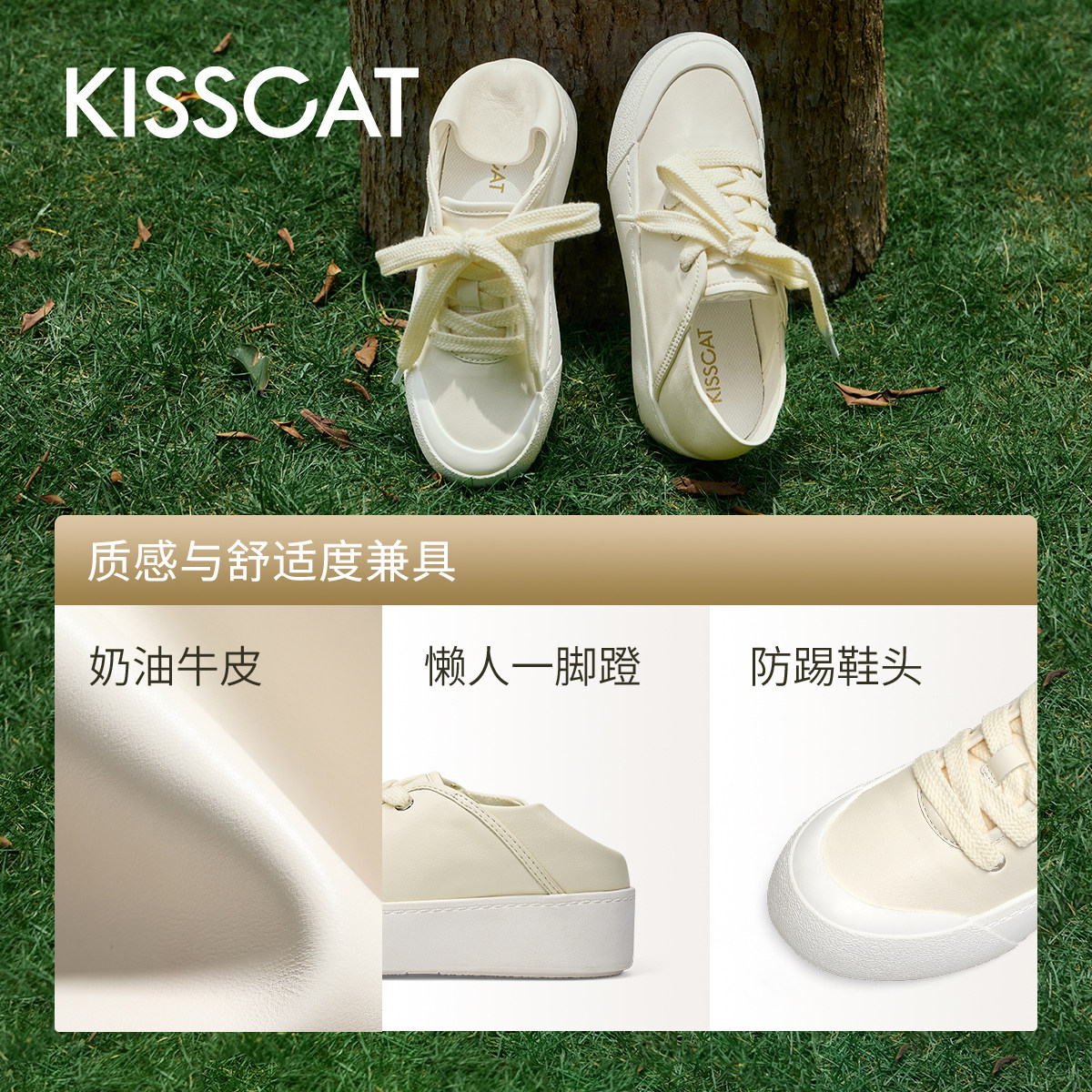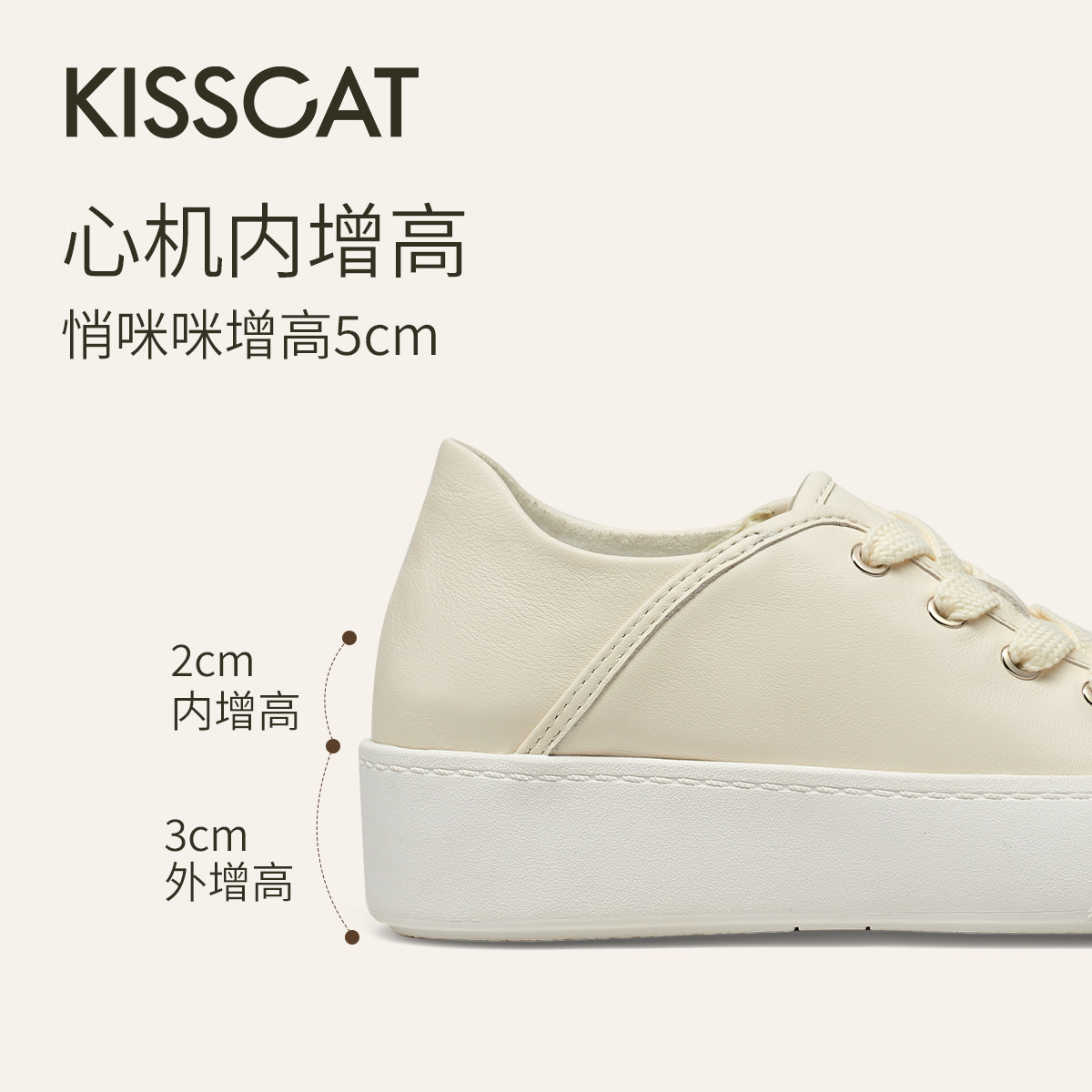 KISSCAT接吻猫新款[小泡芙]内增高小白鞋女厚底运动休闲鞋平底鞋