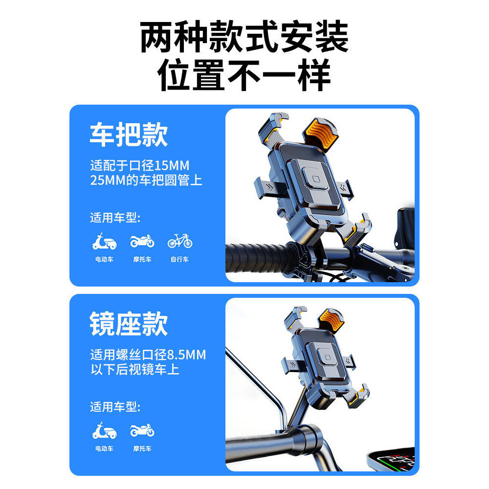 电动车手机支架摩托车外卖骑手专用导航架防震防抖固定架电瓶车