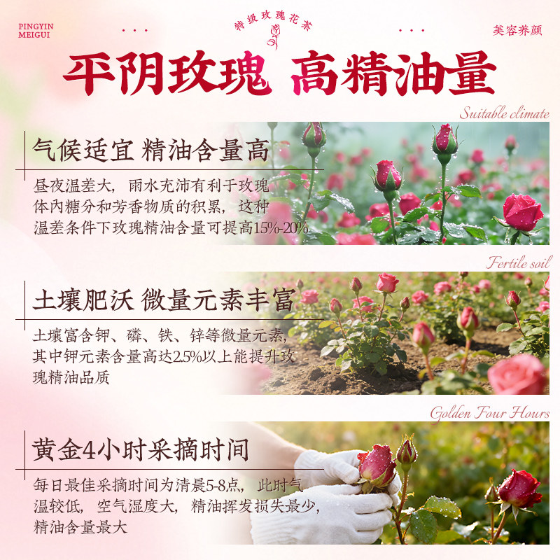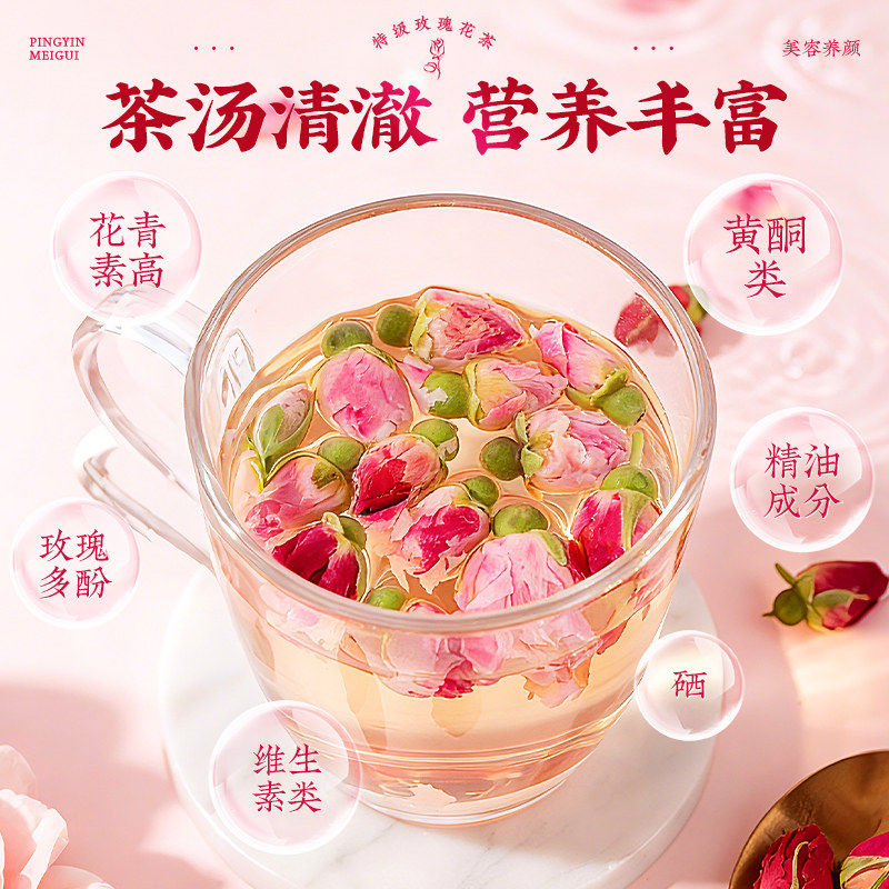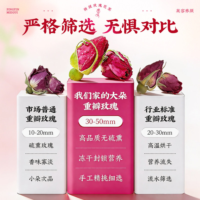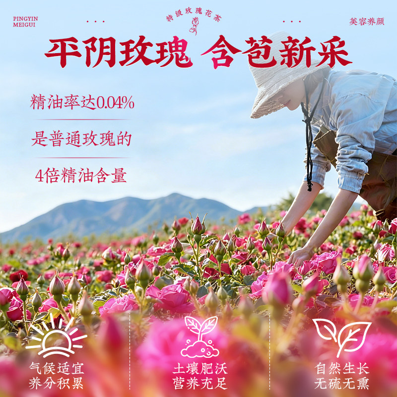 特级平阴玫瑰花干茶疏肝解郁官方旗舰店正品无硫玫瑰花茶重瓣胎菊