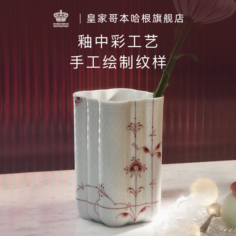 [新年礼物]RoyalCopenhagen皇家哥本哈根棕榈手绘花瓶摆件高级感