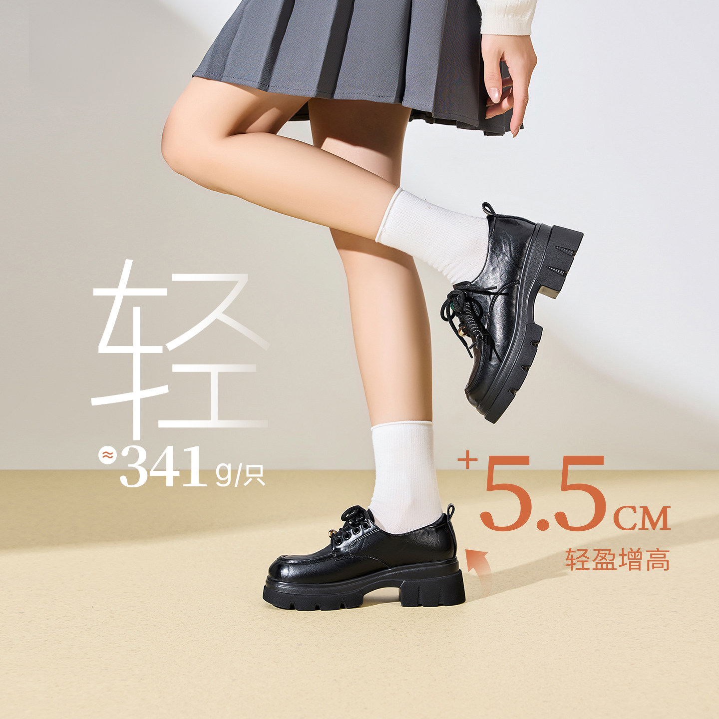 欧货真皮厚底小皮鞋女英伦风圆头加绒德比鞋小个子增高乐福鞋单鞋