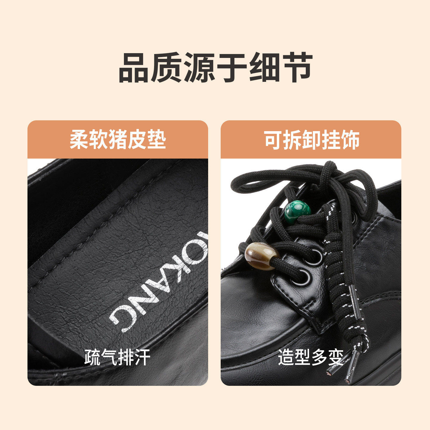 奥康 女鞋2026春季新款厚底乐福鞋女款英伦风增高串珠软底小皮鞋