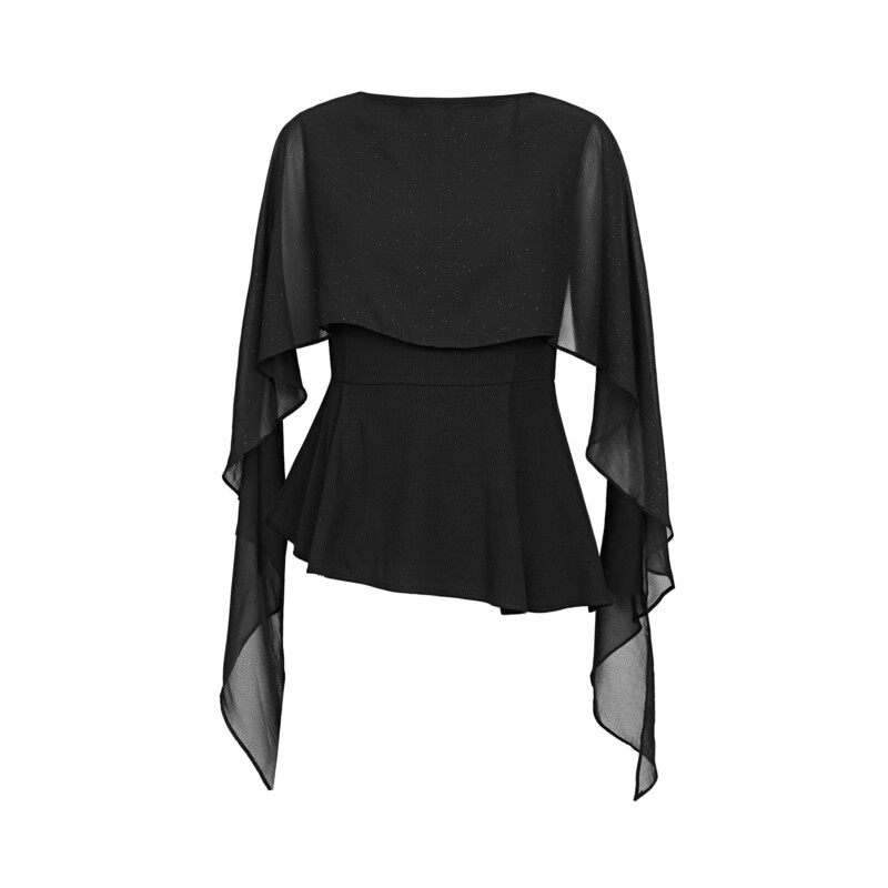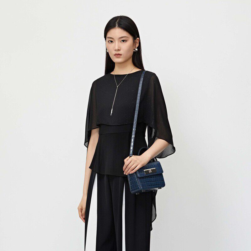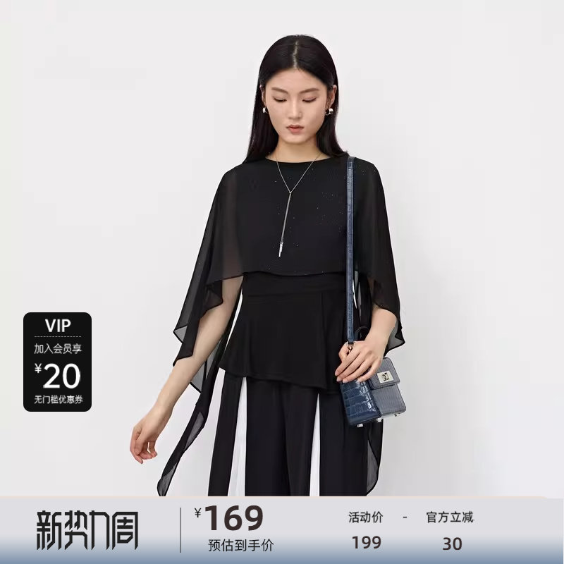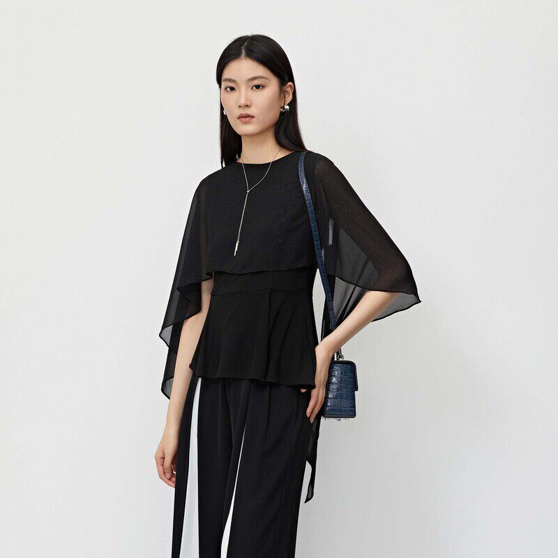sdeer圣迪奥圆领雪纺荷叶边不规则T恤S23280123
