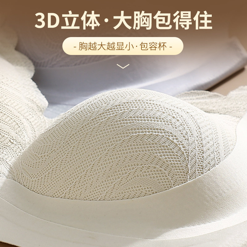 润微茶肌内衣女士大胸显小薄款收副乳聚拢大码上托防下垂蕾丝文胸