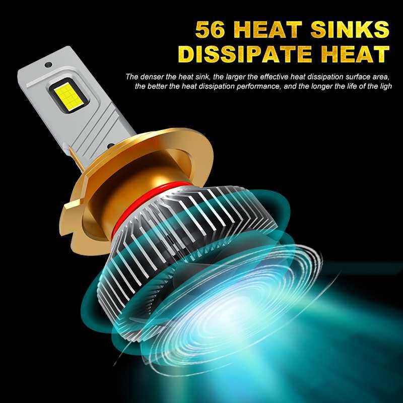 双铜管新能源LED汽车大灯鳍片散热H1H4H7H11高亮聚光汽车前照灯