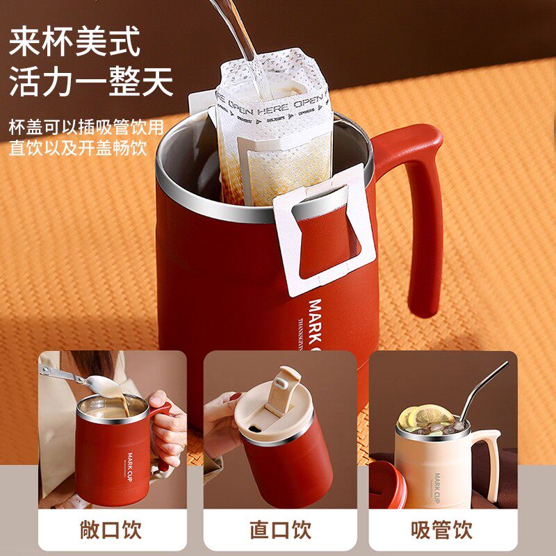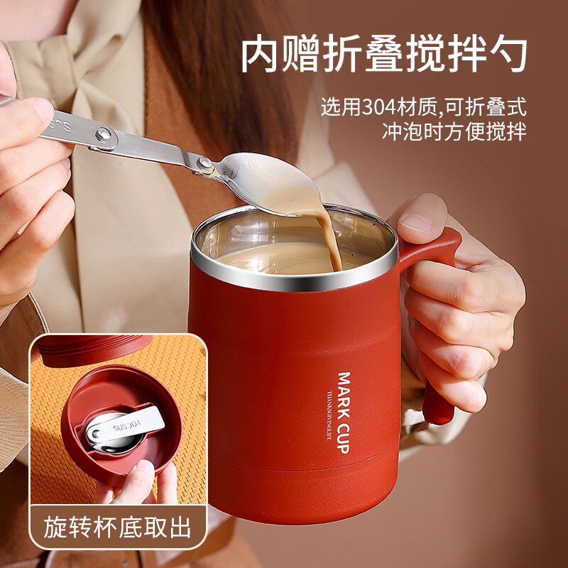 早餐杯子带盖带勺子不锈钢马克杯女生高颜值办公室水杯保温咖啡