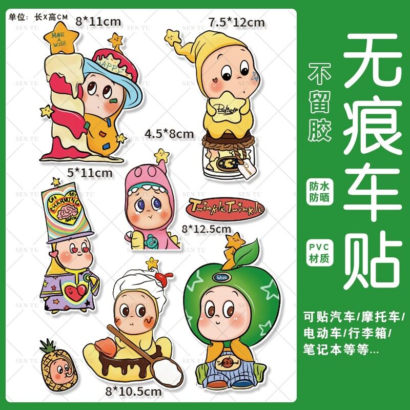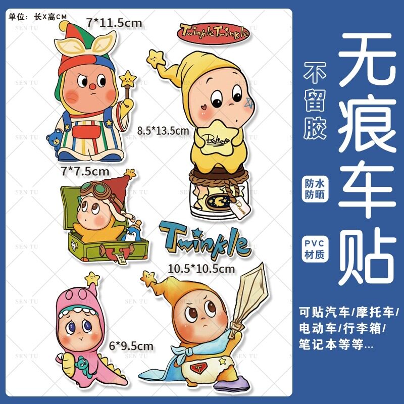 卡通星星人车贴Twunkie可爱汽贴纸电动摩托车装饰划个性划痕贴