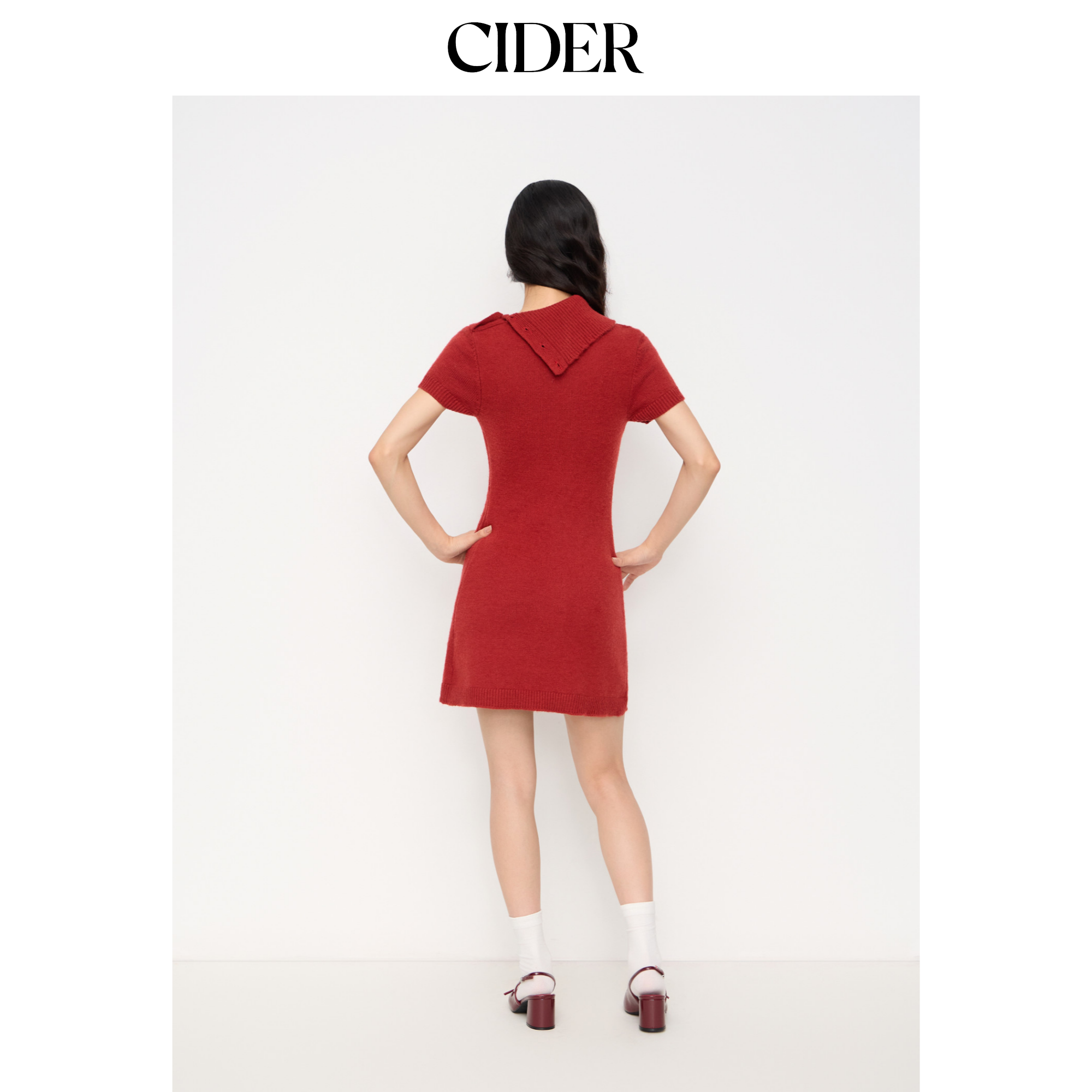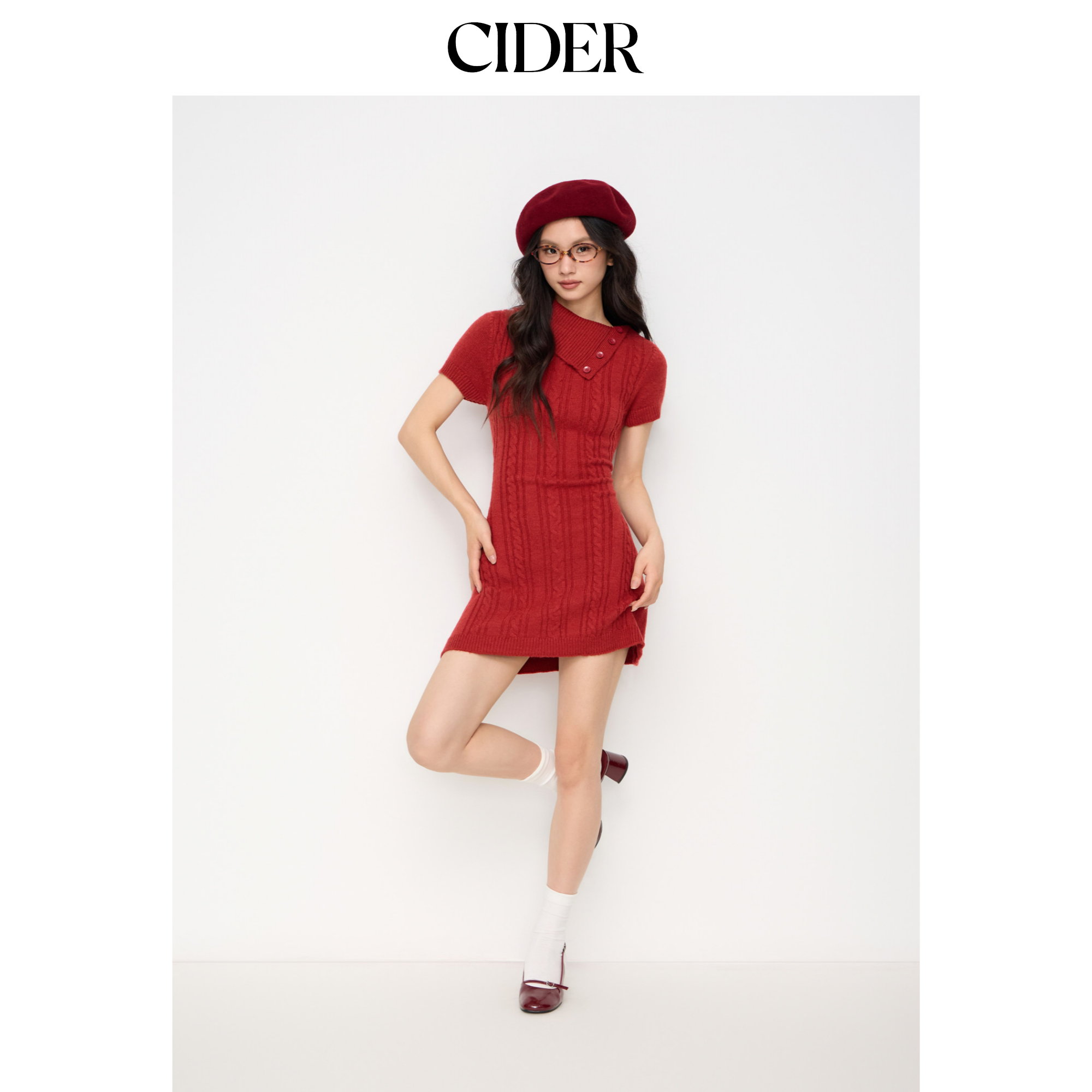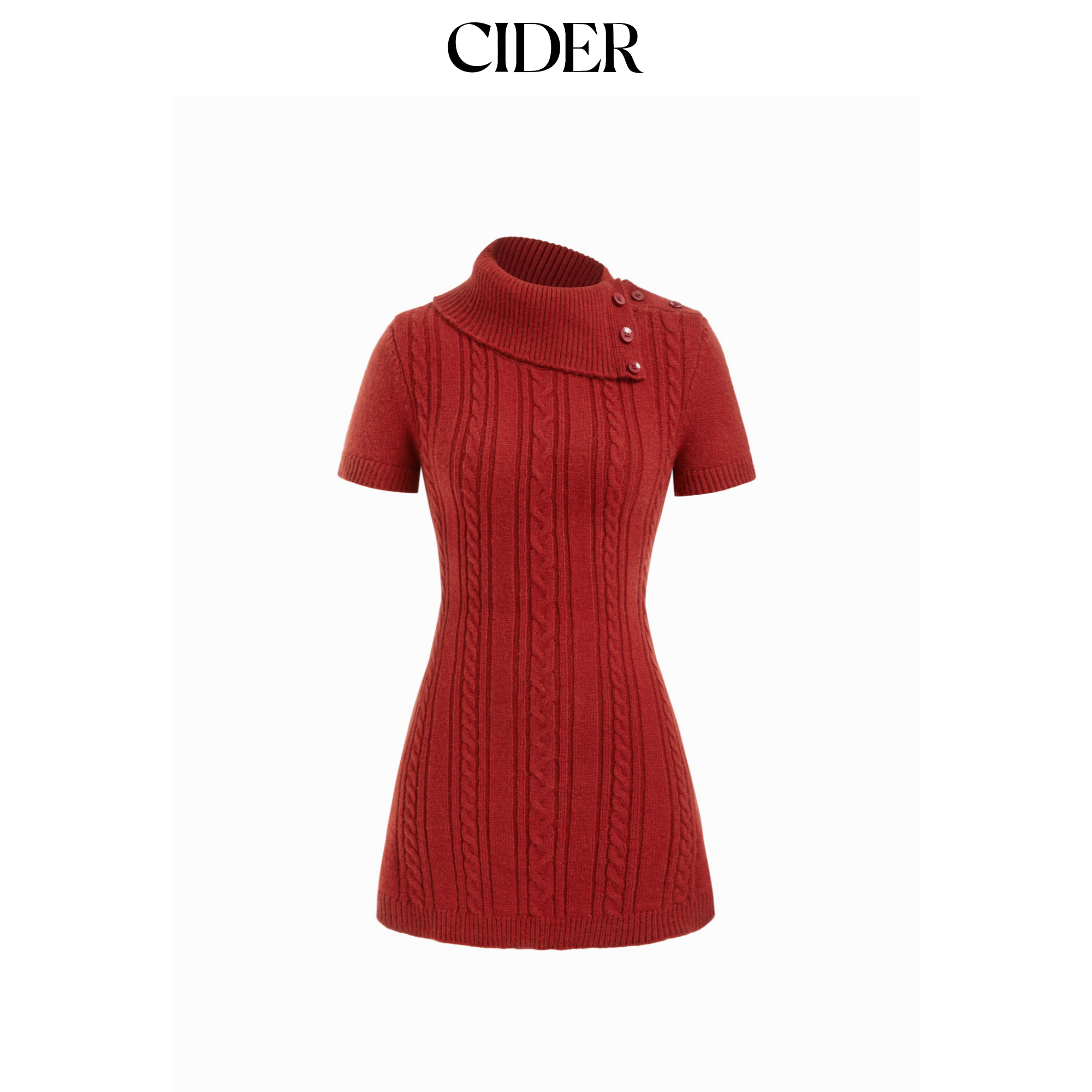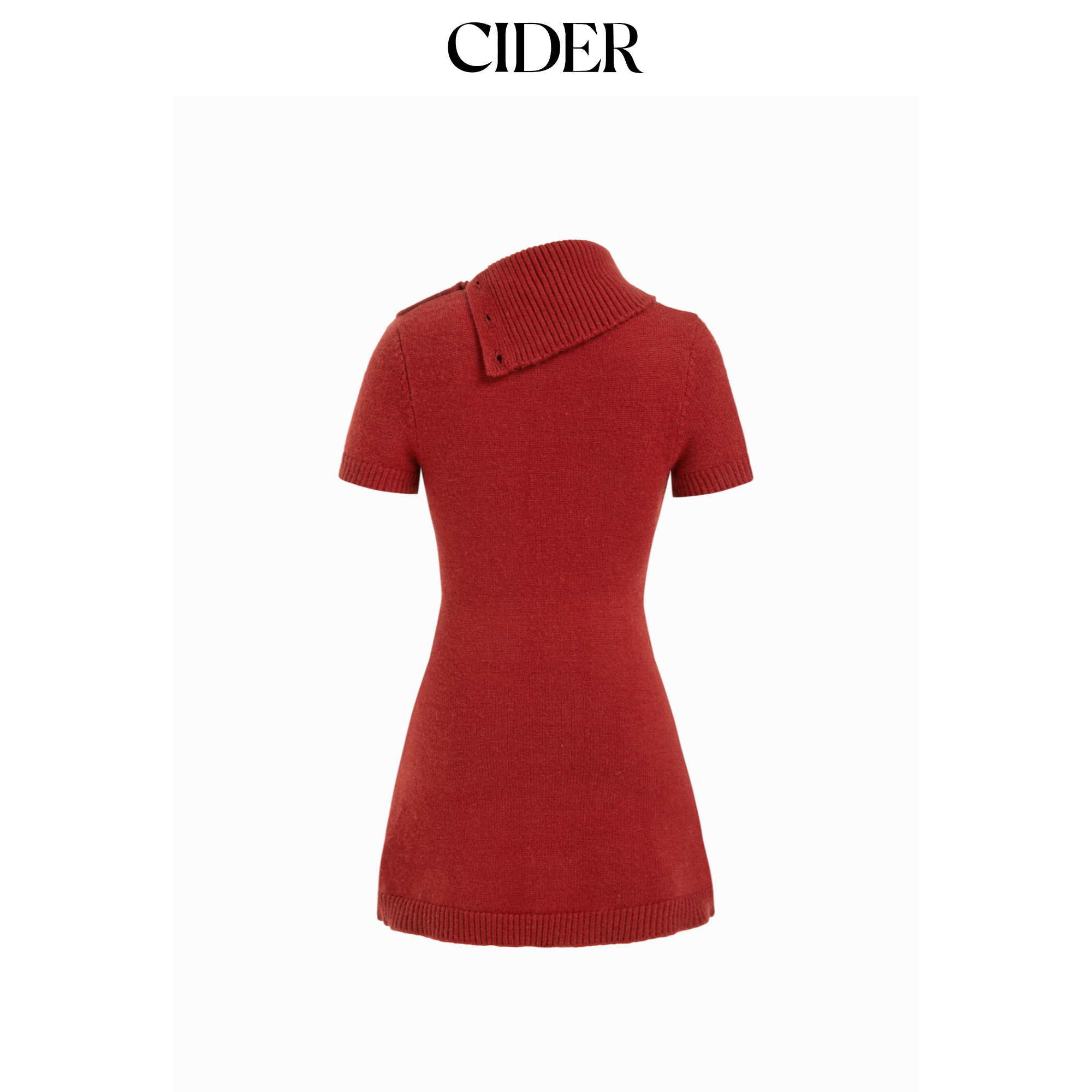 CIDER麻花针织不对称领A字迷你红色连衣裙114968756