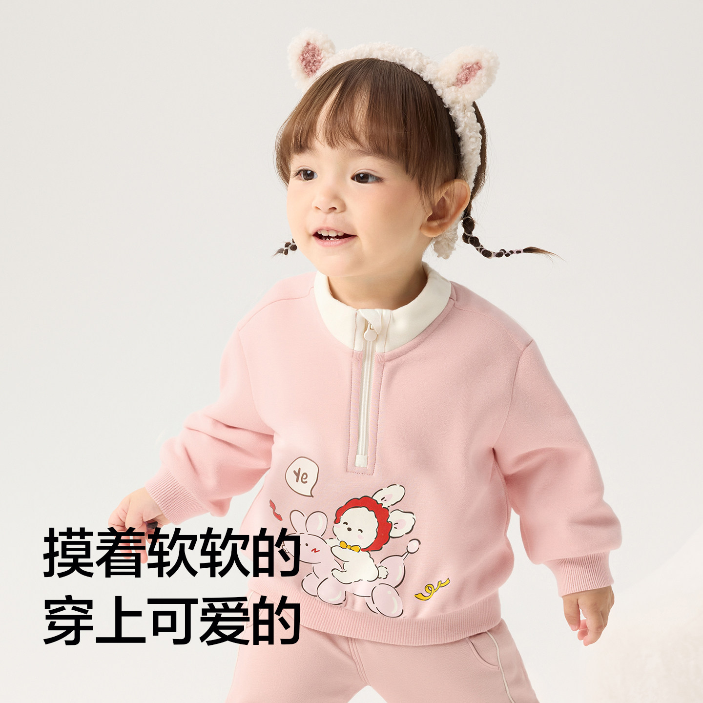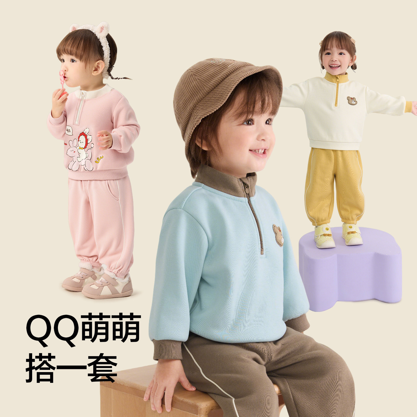 立领卫衣套装,可爱小动物图案