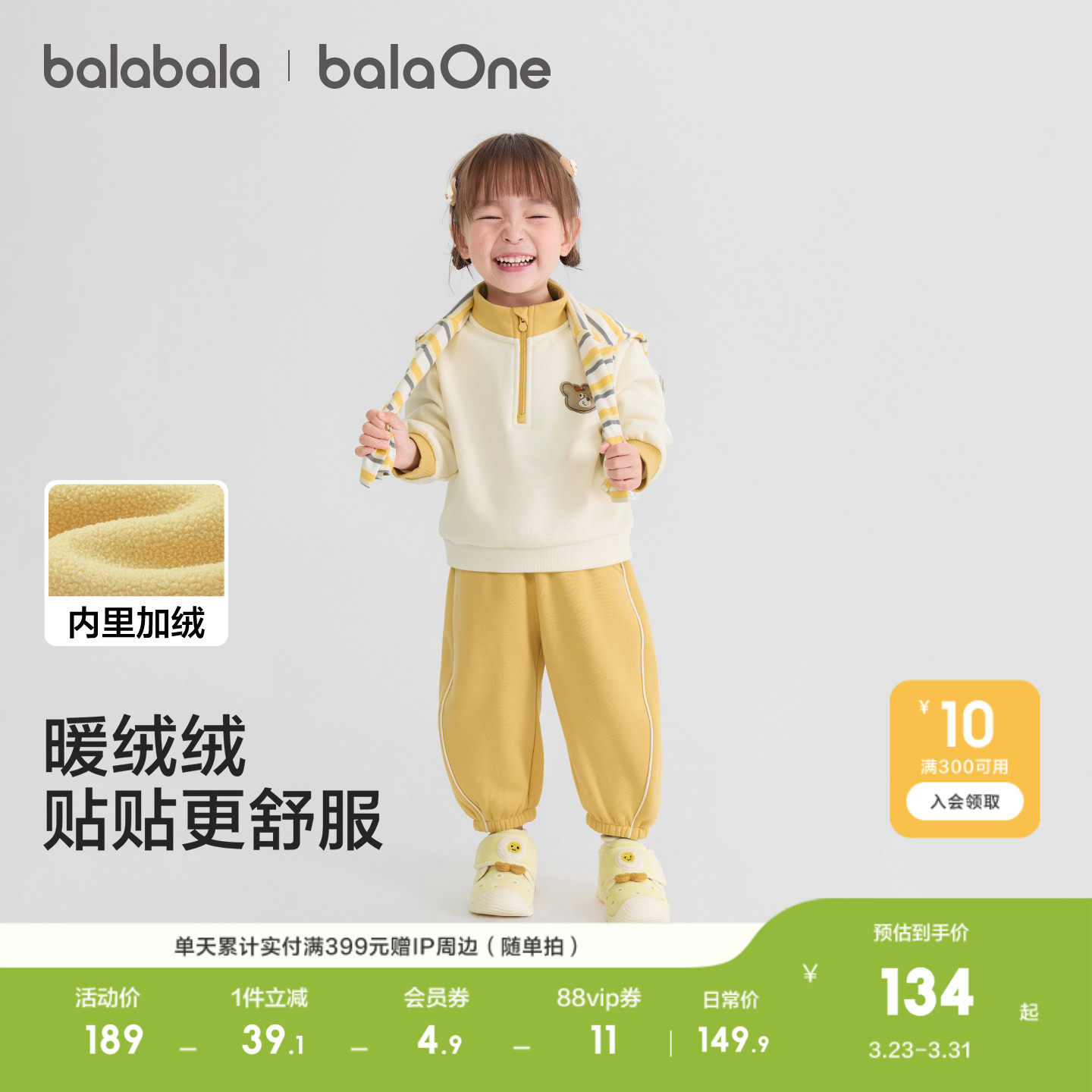 巴拉巴拉童装儿童套装女童宝宝男童两件套上衣秋冬舒适潮加绒保暖
