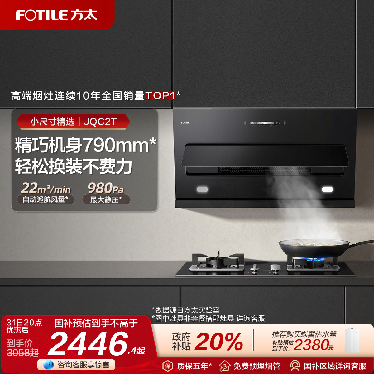 [800mm优选]方太JQC2T抽吸油烟机燃气灶具厨房官方旗舰店套装套餐