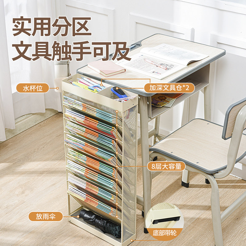 悟生铁艺课室放书架一体学生课桌收纳神器书本收纳置物架教室书桌侧边落地可移动落地书立架初高中生书袋挂袋