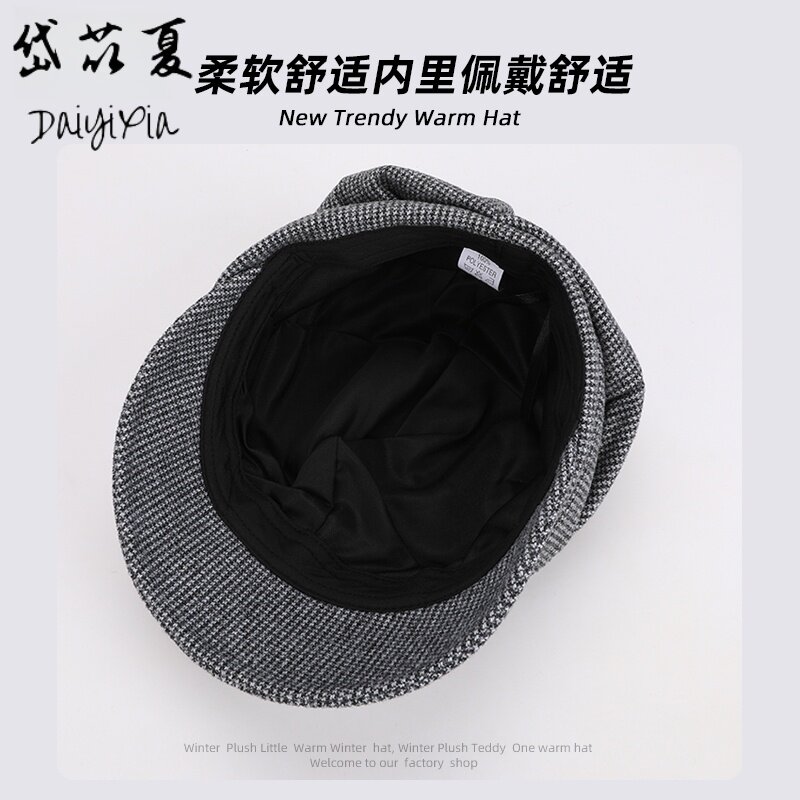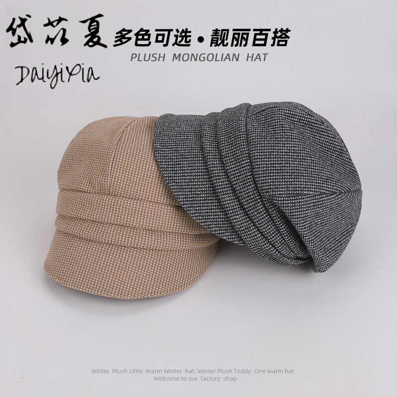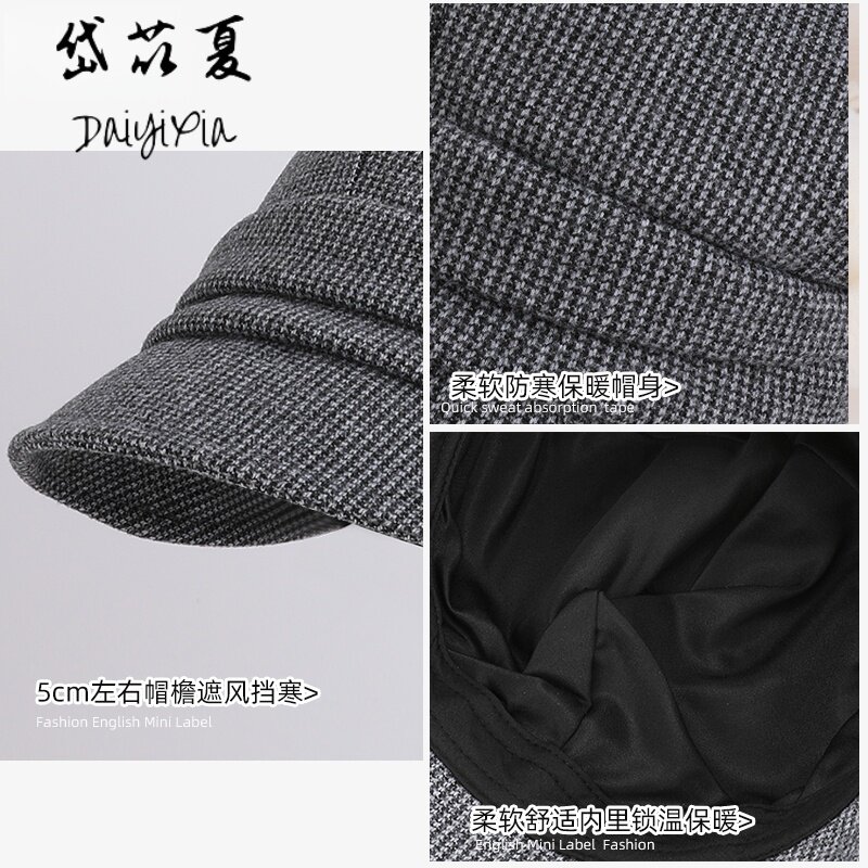 秋冬季贝雷帽简约百搭鸭舌帽子女保暖显脸小八角帽潮褶皱防风黑色