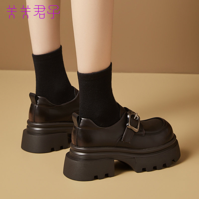欧货真皮厚底小皮鞋女英伦风圆头加绒德比鞋小个子增高乐福鞋单鞋