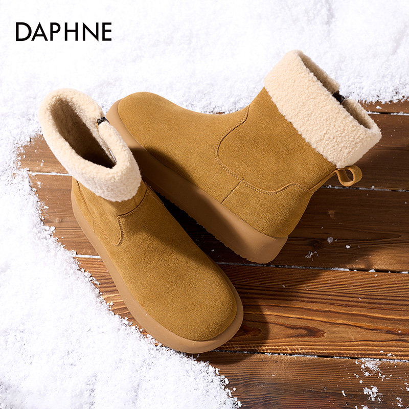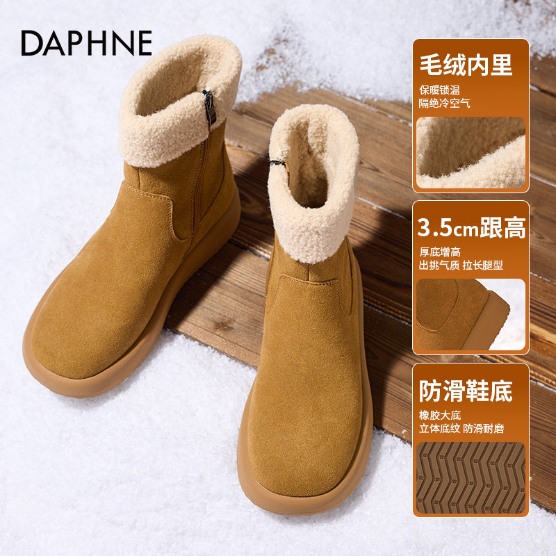 达芙妮加绒保暖时尚雪地靴女款秋冬季新款侧拉链短靴百搭毛毛棉鞋