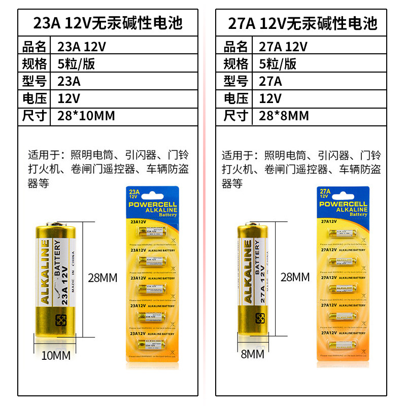 12V23A碱性电池12V27A汽车遥控器门铃卷帘闸门电池12V引闪器电池